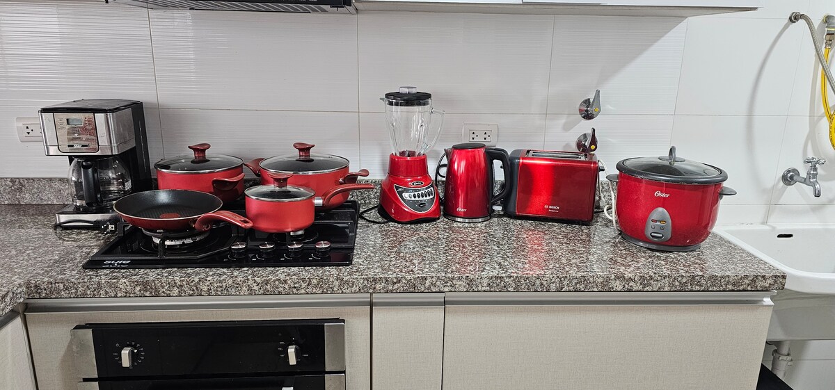 Bucură-te de simplitatea acestei premiere, liniștite și centrale de cazare 01, la câțiva pași de Plaza San Miguel și Pontificia Universidad Católica. Ideal pentru până la 02 de persoane Aproape de tot ce ai nevoie, restaurante, bănci, spălătorii, cafenele, cinematografe, case de schimb valutar. Cazare cu tot confortul unde vei petrece un sejur sigur și confortabil, vei avea internet prin fibră optică, Smart TV și 182 de canale, apă caldă non-stop, bucătărie echipată, mașină de spălat rufe și un balcon frumos.