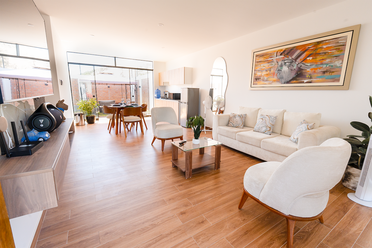 Spacious and bright apartment in Ica with a prime location in a residential area, Puente Blanco, just four blocks from Shopping mall, the Hospital and a few minutes from Huacachina. The apartment boasts excellent natural light and ventilation. It features two bedrooms, two full bathrooms with hot water, a living/dining room, a fully equipped kitchen, a laundry area, and toiletries. Ideal for couples or families seeking a peaceful retreat, it also includes free external parking.