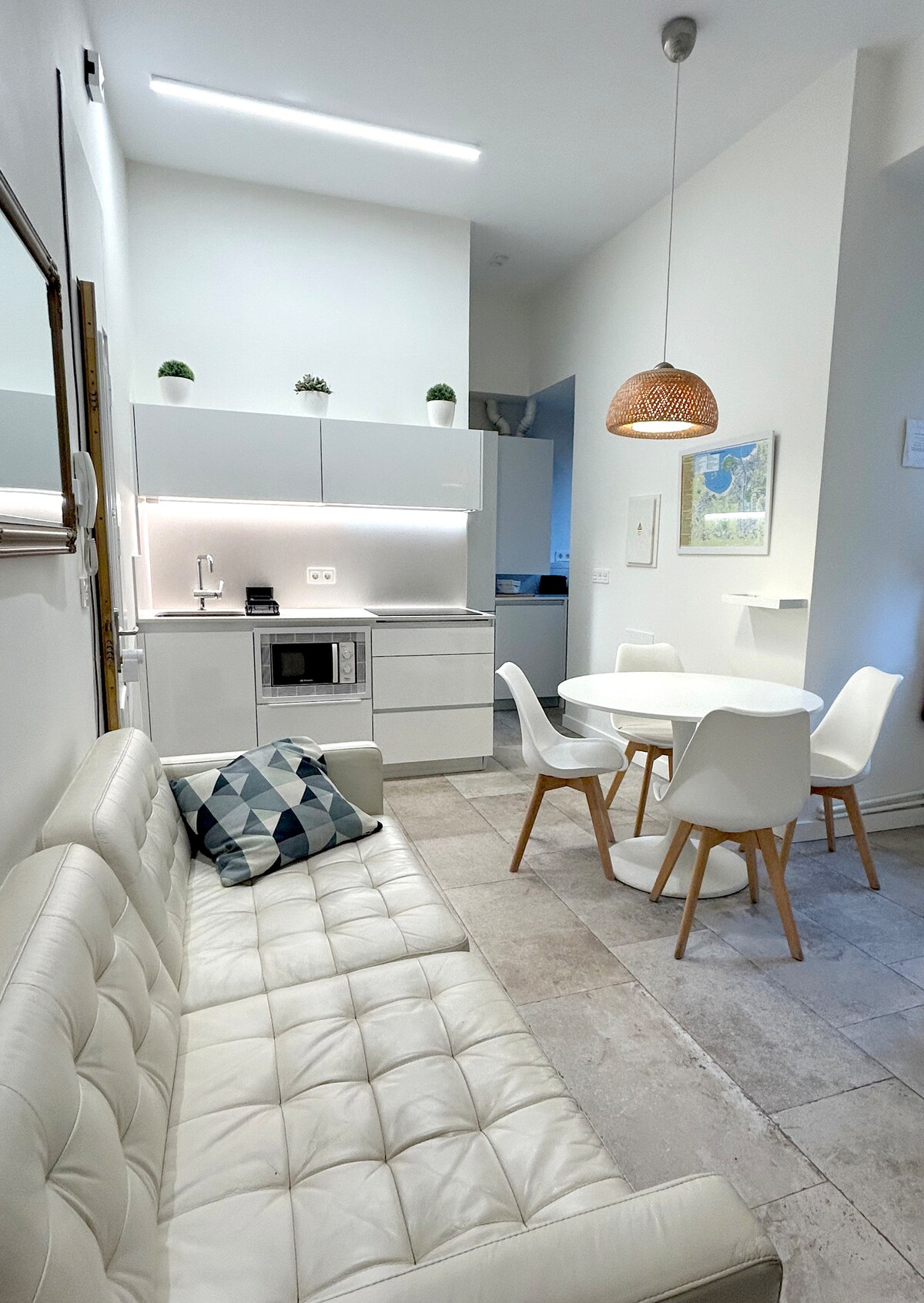 Apartament confortabil și vesel, plin de culoare și lumină, pentru a te bucura de San Sebastian. Vedere panoramică la mare. Dimensiuni perfecte. La câțiva pași de plaja din La Concha și de centrul orașului. Împărțite într-o cameră spațioasă cu dulapuri bune, un living spațios cu o canapea super confortabilă și picturi moderne, o bucătărie deschisă cu toate aparatele necesare și mărcile de top. Baie mare, duș mare, spațiu de birou pentru mașina de spălat și încălzitorul de apă caldă. WIFI DE MARE VITEZĂ și difuzoare de sunet BEO.