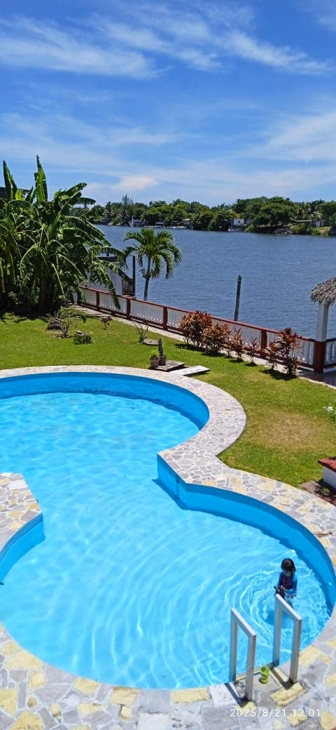 Casa este situată în fața râului,foarte aproape de plajă și de dunele de nisip care se conectează la Chachalacas ,este pentru a te odihni și relaxa , te asigur că vei vedea apusuri de soare frumoase. Trebuie să-și aducă pepinierele, are o ședere plăcută: are o piscină cu pergolă, palapacu vedere la râu. Băi în zona piscinei,un grătar în zona proprie Jardin Embarcadero este prevăzut cu o barcă de pescuit, 3 .kayac și veste de salvare, nu avem Wi-Fi