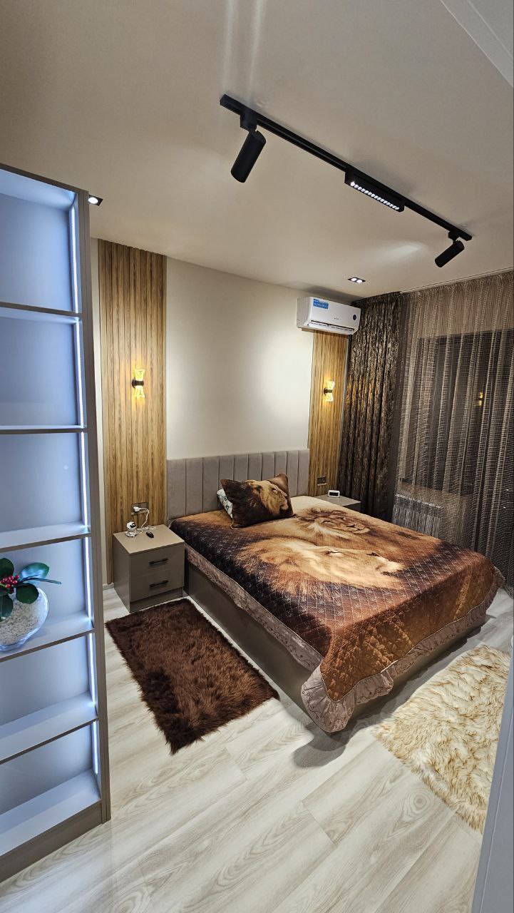 Iată la ce te poți aștepta: Un dormitor confortabil cu un pat confortabil și un dulap mare Un living spațios cu un covor moale și un birou Un balcon cu flori și priveliști panoramice uimitoare asupra orașului Renovare modernă, atmosferă calmă și iluminat plăcut 📍 Poziție perfectă: Apartamentul este situat într-un complex rezidențial nou, aproape de magazine, cafenele, stații de transport. Acces ușor la principalele atracții și la oraș. 🚿 Wi-Fi | 🛏 Lenjerie de pat curată | 🌇 Vedere de sus | 🔒 Seif