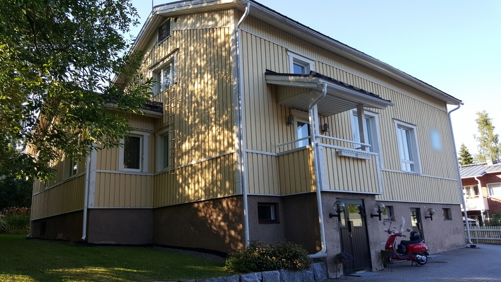 Totally renovated 54 m2 apartment which is at same single-family house. House owner is living at upstairs but you are living on your own. Apartment has own entrance, terrance, no stairs and no tresholds. You can park your car very near at the street. There is always a lot of parking space. House is front of Helsinki Cenral Park where you can do your exercise. No dogs or any pets! We use geothermal energy to warm our house and we have solar energy plant. Green energy!