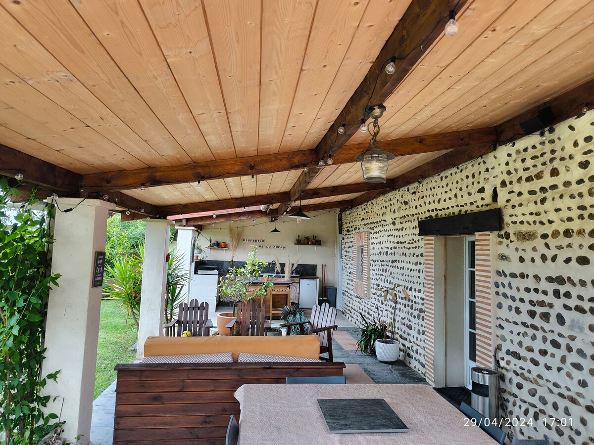 Évadez-vous dans cette charmante maison moderne, nichée dans une impasse paisible de Sauvagnon, sans vis- à-vis. Profitez d'un séjour alliant confort moderne et relaxation absolue grâce à nos prestations de massage professionnel sur place. Un véritable havre de paix pour les couples, famille ou voyageurs en transit ! La maisonnette se situe à quelques mètres de notre maison principale, nous serons donc disponible en cas de problème (sauf durant nos congés) Nous fournissons draps et serviettes !