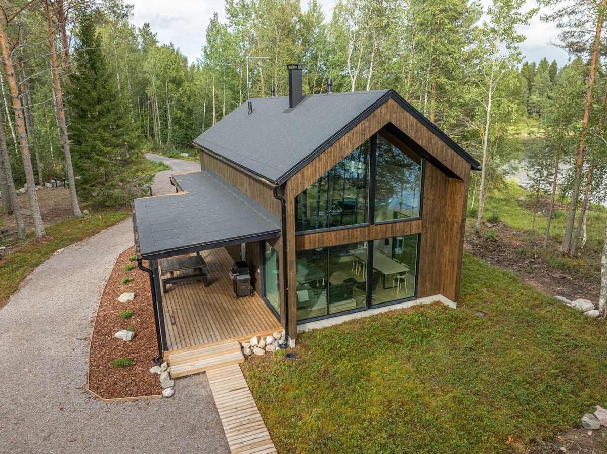 Un loc unic pentru a vă relaxa și a vă bucura de natura finlandeză. Ferestrele au vedere la peisajul uimitor al lacului Oulujärvi (unul dintre cele mai curate lacuri din Finlanda). E la 50 de metri de plajă. Vei avea acces la toate dotările de care ai nevoie pentru o vacanță, iar într-o cadă cu hidromasaj (notă! o cadă cu hidromasaj în aprilie-octombrie) poți urmări lacul. Pe terasa vitrată, simți cerul înstelat sau Luminile Nordului iarna. Cabana este perfectă pentru călătorii care caută un refugiu fără probleme sau o vacanță sportivă răcoritoare.