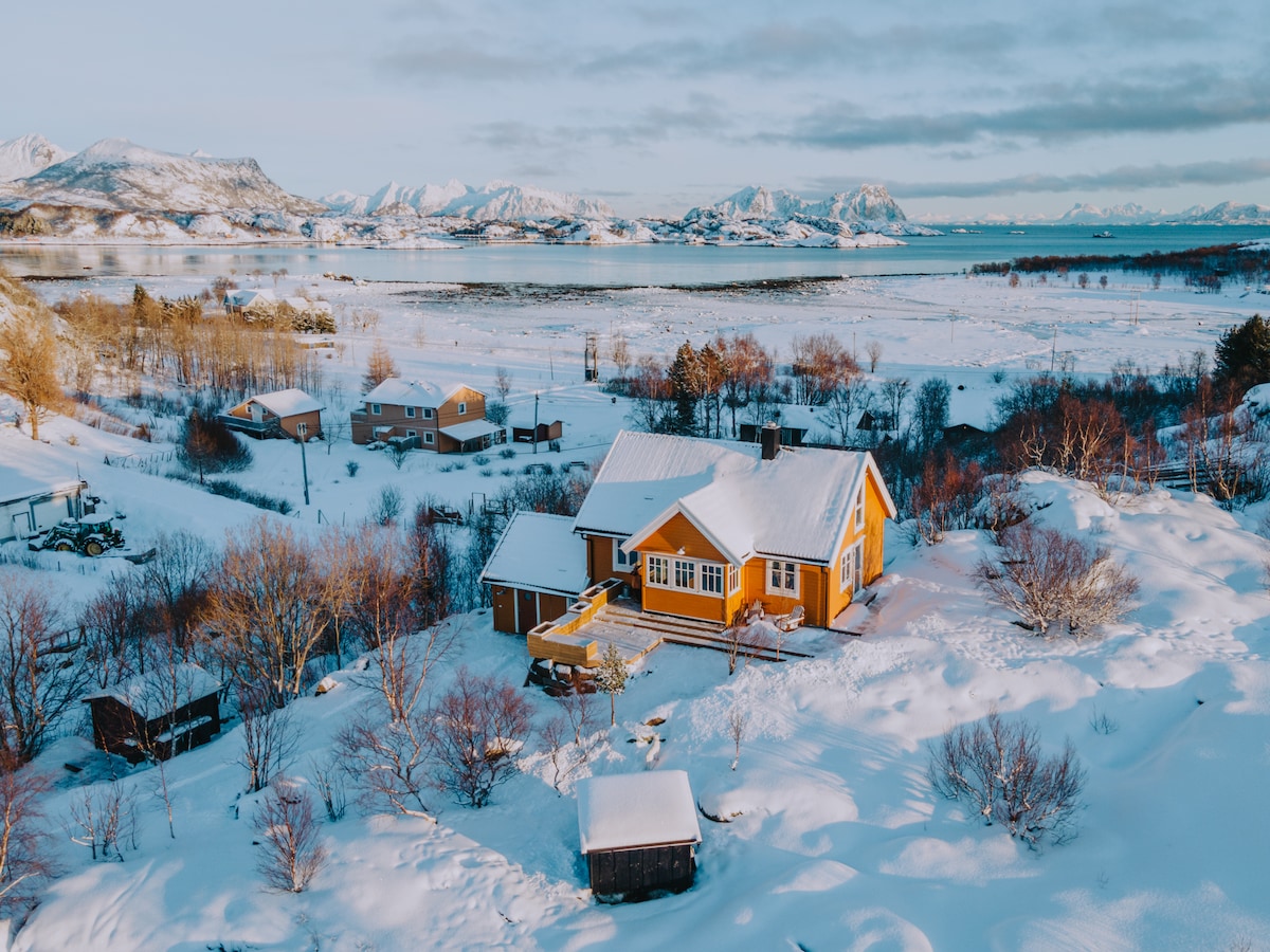 Apartament confortabil cu două dormitoare într-un vechi sat de pescari Lofoten, între munți dramatici și mare. Bucură-te de luminile nordice iarna și de soarele de la miezul nopții în timpul verii. Aer condiționat, WiFi rapid, spațiu de lucru, sistem audio Bluetooth, jocuri, cărți și bucătărie complet utilată cu mașină de spălat vase. Animalele de companie și șederile lungi sunt binevenite; ghidul nostru digital îți oferă cele mai bune sfaturi locale. Jaluzele pentru întunecarea camerei pentru nopți cu lumină, blender și pahare de vin pentru seri relaxate după explorarea plajelor, drumeții și sate de pescuit.
