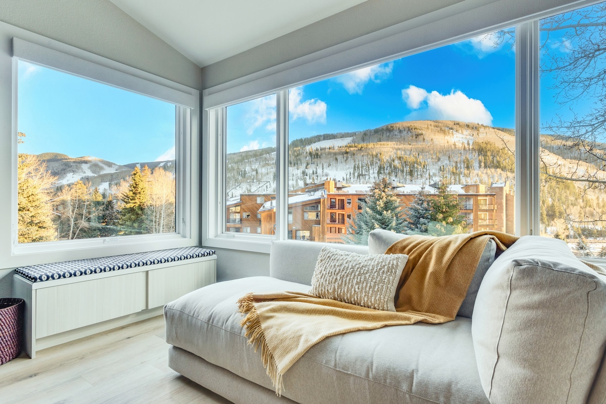 Priveliști incredibile neobstrucționate ale muntelui Vail în acest apartament spațios, cu două dormitoare, în stil montan modern. Tavanele boltite cu ferestre cu imagini lasă faimosul soare din Colorado să pătrundă. Un șemineu confortabil și o bucătărie renovată fac din aceasta o bază minunată pentru explorarea locului de joacă în aer liber! Pași către autobuzul gratuit al orașului Vail pentru acces facil la Vail Village - cumpărături, mese și viață de noapte fără a avea nevoie vreodată de mașină! Autorizație TOV STR #025804