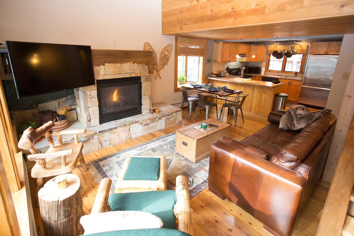 The Vail Treehouse is your boho chic studio in the heart of Vail Village and the perfect jumping-off point for hiking, biking, fishing, skiing, or shopping + dining. + Steps from Solaris plaza, Bol, Matsuhisa + 7 min walk to Gondola One +Views of Gore Creek + ski mountain + Full kitchen, washer/dryer, fireplace + King-sized American Leather sleeper sofa on main level or +Tuft + Needle queen bed up in the loft Town of Vail STR #027050