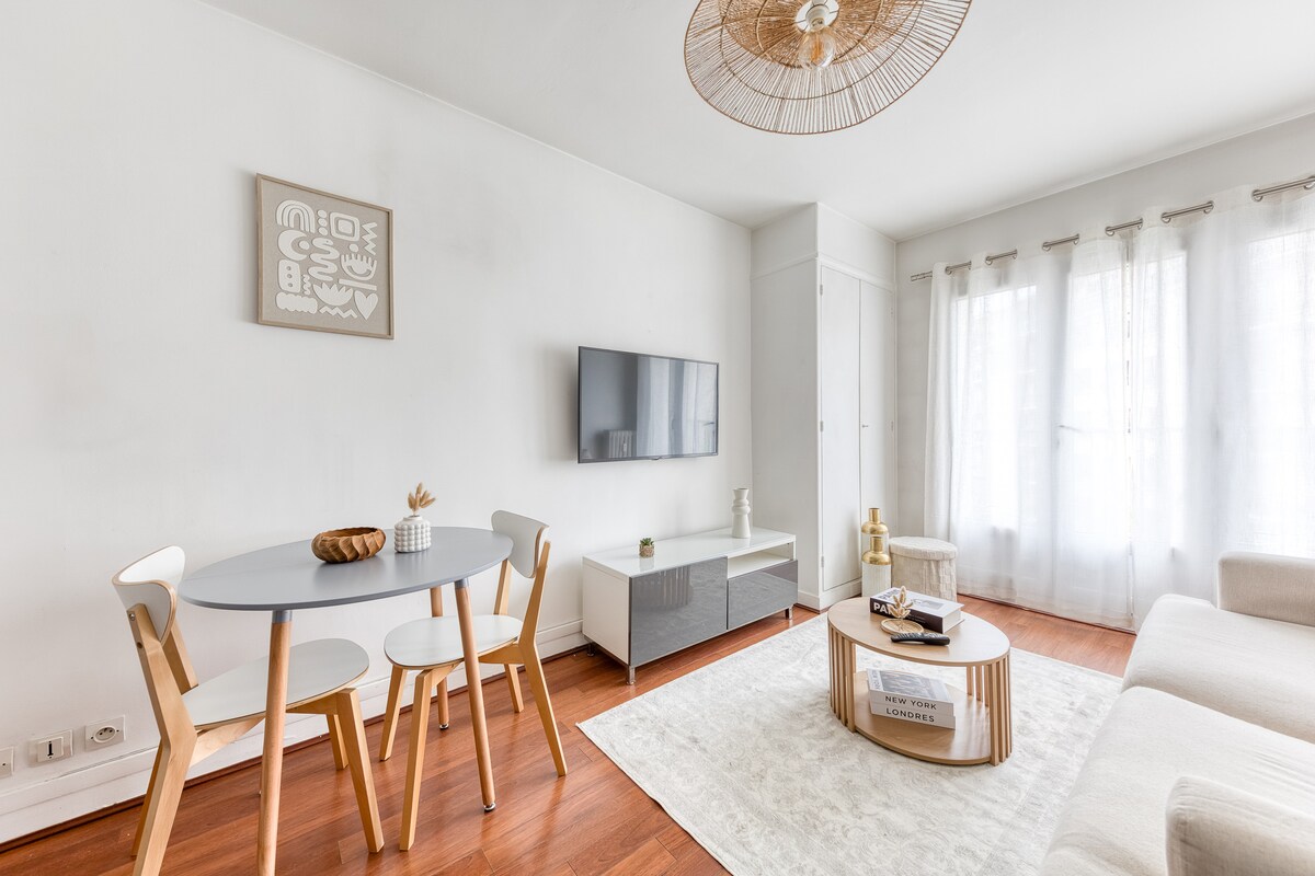 Liniștit și luminos, ideal pentru o ședere confortabilă la marginea Parisului. Bucură-te de un living frumos în care să te relaxezi, un spațiu de birou convenabil în dormitorul confortabil cu proiector suspendat🎬, o bucătărie cu colț de cafea pentru a începe bine ziua. La numai 5 minute de RER C , la 8 minute de RER D și la 15 minute de Orly✈️, apartamentul combină confortul, calmul și accesibilitatea.