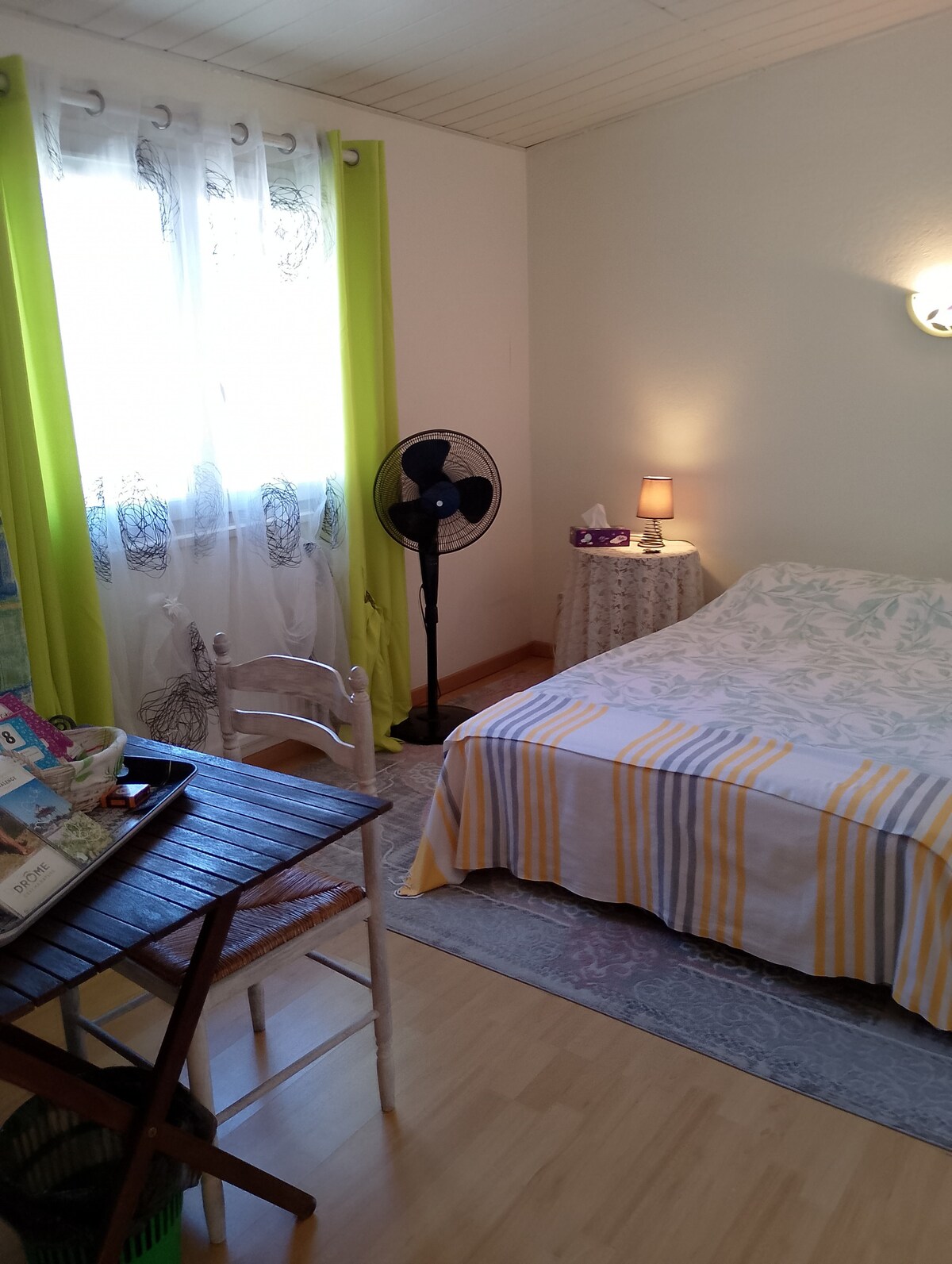 Îți urăm bun venit în casa noastră recentă. O cameră la etaj este rezervată pentru oaspeți; baia și toaleta la etaj, care pot fi folosite în comun, dacă este cazul, dacă și cealaltă cameră este închiriată. Camera are TV, WI FI și vara un ventilator. Atenție: fără acces la bucătărie și fără masă în cameră (cu excepția mesei copilului, biberonului, medicamentelor...). Fumatul este posibil pe terasa în aer liber.
