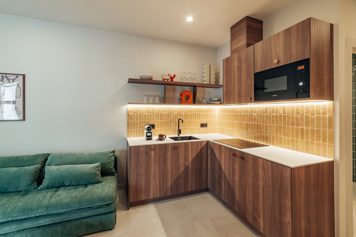 Studiul nostru pentru 2 persoane cu o suprafață totală de 28 m² este perfect pentru cuplurile sau călătorii singuri care caută autenticitate în apropierea plajei din El Cabañal, Valencia. Acesta include o zonă de dormitor, o baie privată, o bucătărie și acces la o terasă comună excepțională, renumită în zonă pentru priveliștile și apusurile sale de soare.