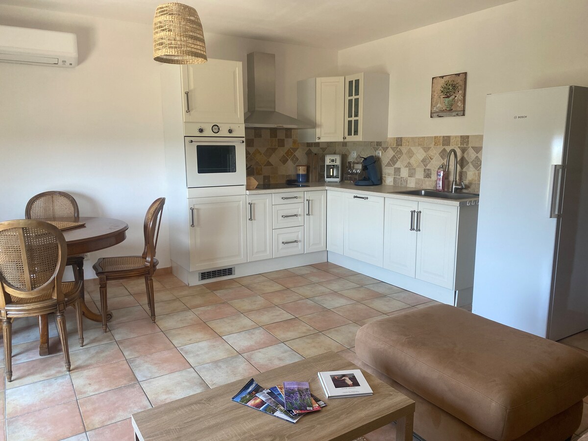 Bine ai venit la cabana noastră „ La Dolce Vita” situată în satul provensal Valensole. Aceste 2 camere recente de 50 m² se află la parterul reședinței noastre principale, cu intrare independentă. Liniște în timp ce te afli aproape de centrul satului (toate magazinele). Confortabil, spațios și foarte bine echipat, totul este făcut pentru o ședere minunată. Apoi vino și vizitează frumoasa noastră regiune: platoul Valensole și levănțica sa, lacul Sfânta Cruce și Cheile du Verdon.