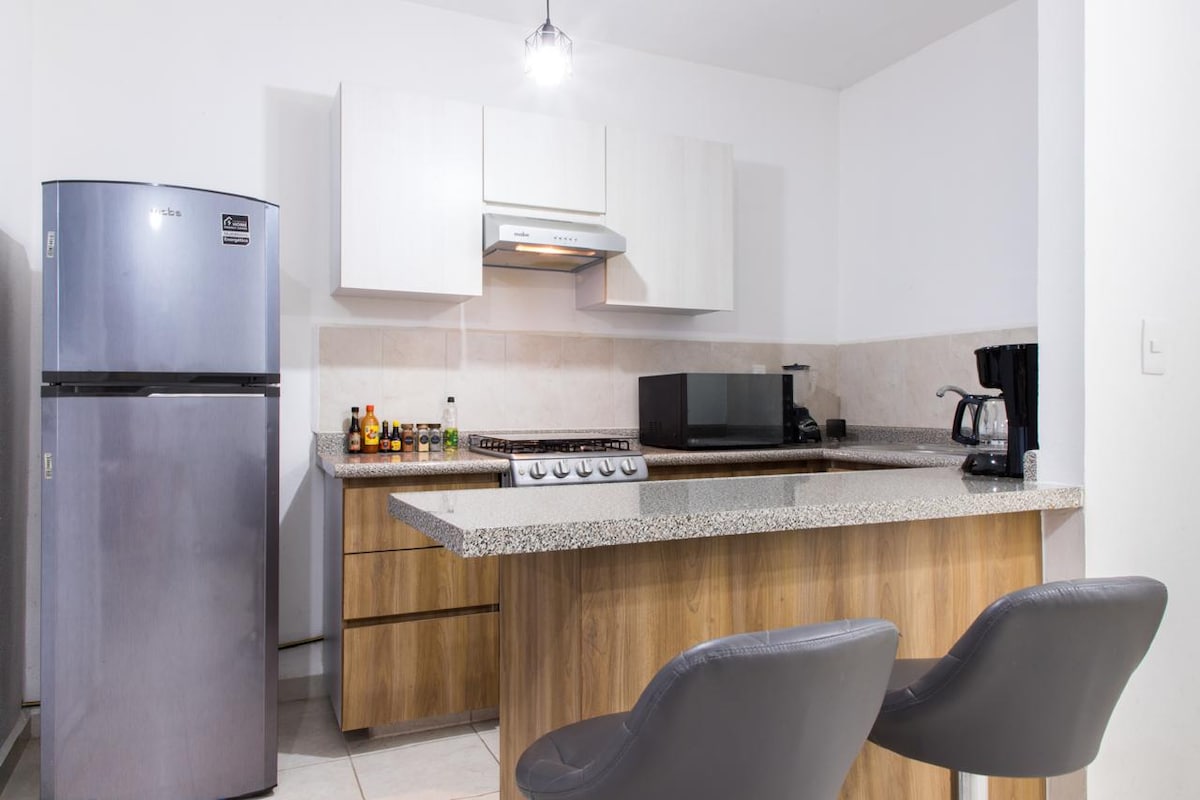 Relaxează-te cu întreaga familie la această cazare de la etajul Baja, unde liniștea este respirabilă. Vei găsi confortul și liniștea cu tot ce ai nevoie pentru a te simți ca acasă. Centru comercial și multe restaurante în apropiere, lângă parcul acvatic Inbursa. Are aer condiționat în toate dormitoarele, living, sufragerie și bucătărie. DOTĂRI: club de terasă, Asadores, piscină, teren de sport și jocuri pentru copii. SECURITATE: are supraveghere pentru a intra în seminar.