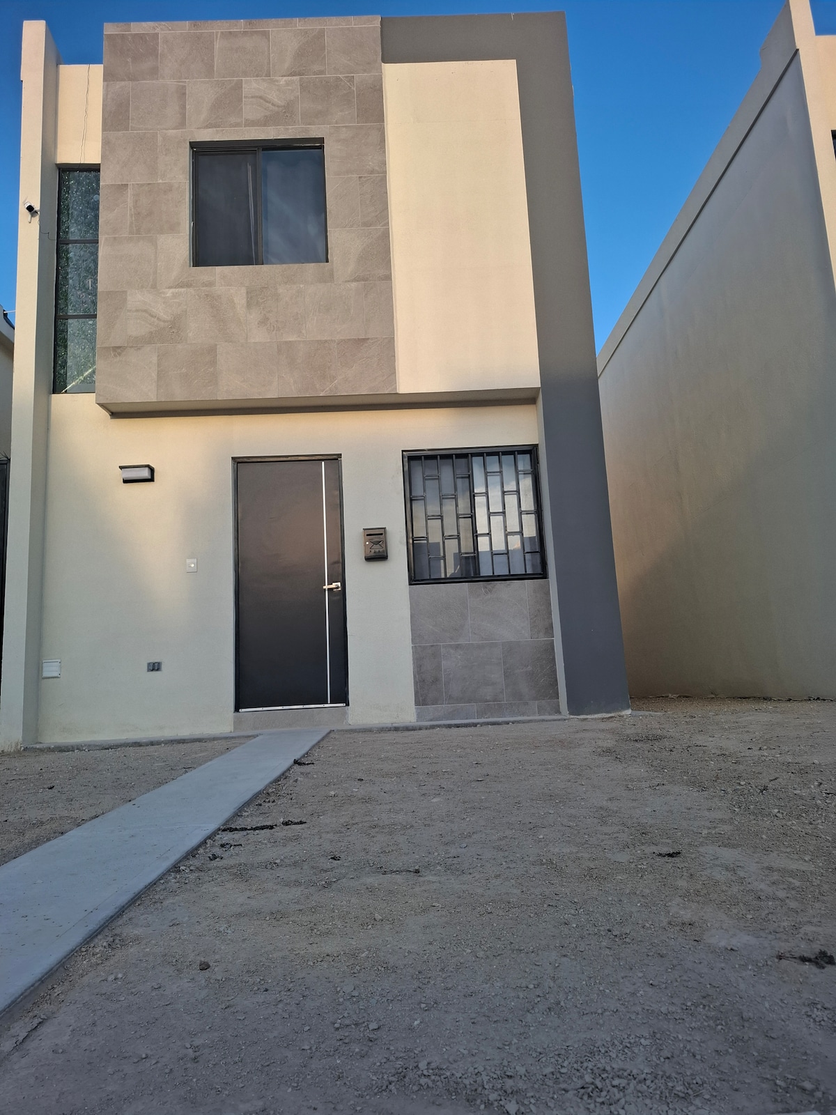 Întreaga cazare situată în cartierul Almería Privada 7. Foarte aproape de aeroport și de zona industrială din Apodaca. Are 3 dormitoare la etajul al doilea. La primul etaj se află livingul/sufrageria și bucătăria. Ariile au TV cu Netflix, Minisplit frio/Heat și dulap tubular simplu