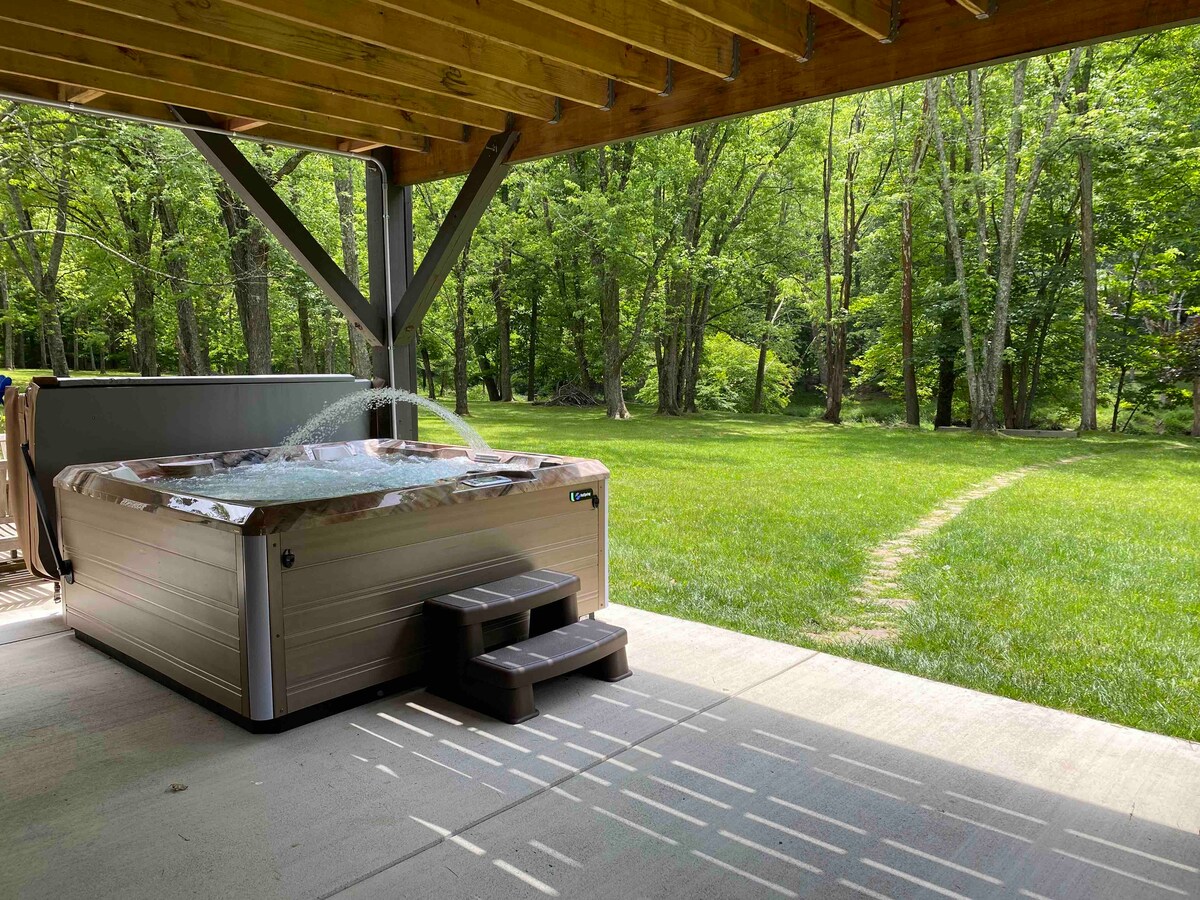 By a Mountain Stream! Creekside Comfort, Hot tub