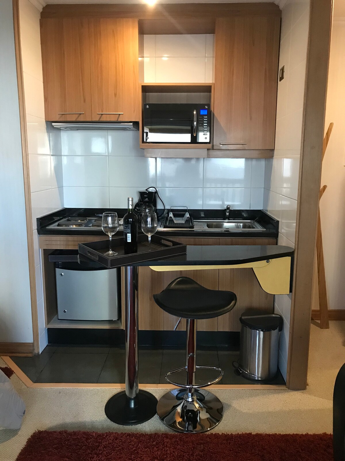 Apartament minunat în inima Valle Nevado!! Room service zilnic inclus. 1 dormitor cu pat dublu + dulap; 1 baie; bucătărie deschisă bine echipată; living cu o canapea extensibilă potrivită pentru 2 adulți; un balcon mic. La câțiva pași de pârtiile de schi, restaurantele, magazinele și mini-marketul. Departamento casi nuevo y muy cómodo, en pleno Valle Nevado!! Servicio de limpieza diario. Del edificio uno sale caminando a las pistas, los restaurants y tiendas de Valle!