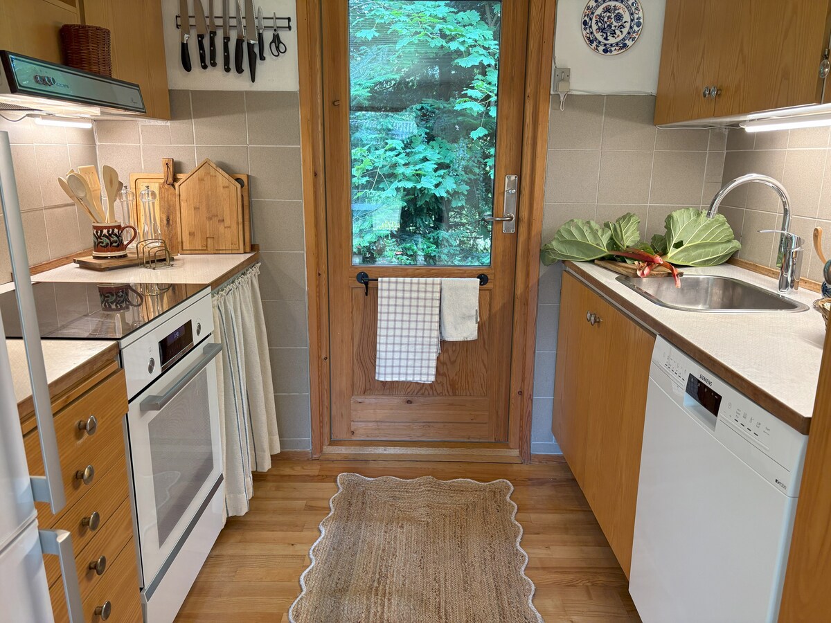 Cabană minunată de 90m ² cu mansardă în împrejurimi liniștite, aproape de fiord și o zonă comună minunată cu un debarcader în timpul lunilor de vară. Nu există vedere la apă din casă. Totul este inclus în preț, electricitate, apă, prosoape, lenjerie de pat, prosoape de vase și alimente de bază, cum ar fi ulei, zahăr și condimente. Soba cu lemne este principala sursă de încălzire, există încălzire electrică în baie, încălzire prin pardoseală care este pornită atunci când puterea este ieftină. Grădina este complet izolată, cu spațiu pentru jocuri, sport și jocuri.