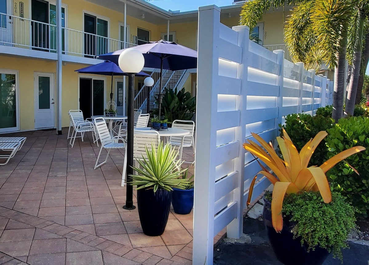 Pași către Siesta Beach | Chic Studio / Piscină și curte pavată