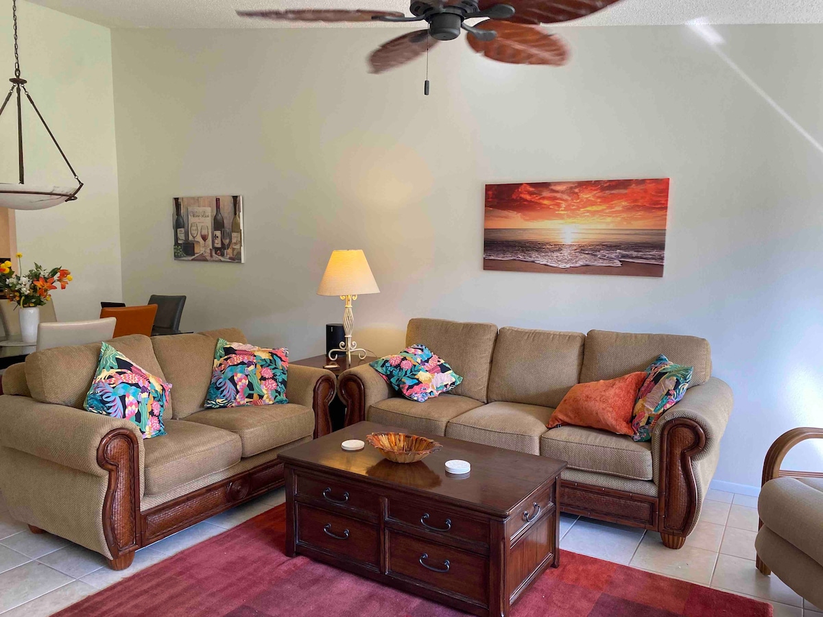 Această vilă este spațioasă și luminoasă, cu o mulțime de ferestre. Interiorul tocmai a fost actualizat. Decorul tropical te face să te simți ca la plajă. Televizor cu ecran plat imens. Pardoseală din gresie în zonele de living și laminat în dormitoare. Lanai ecranat are vedere la palmieri și amenajare peisagistică matură. Internet wireless de mare viteză inclus. Are tot ce îți trebuie pentru o vizită scurtă sau o ședere prelungită. Bucătărie complet complet utilată. Mașină de spălat și uscător. Scaune de plajă și prosoape. Un garaj auto și spațiu pe alee.