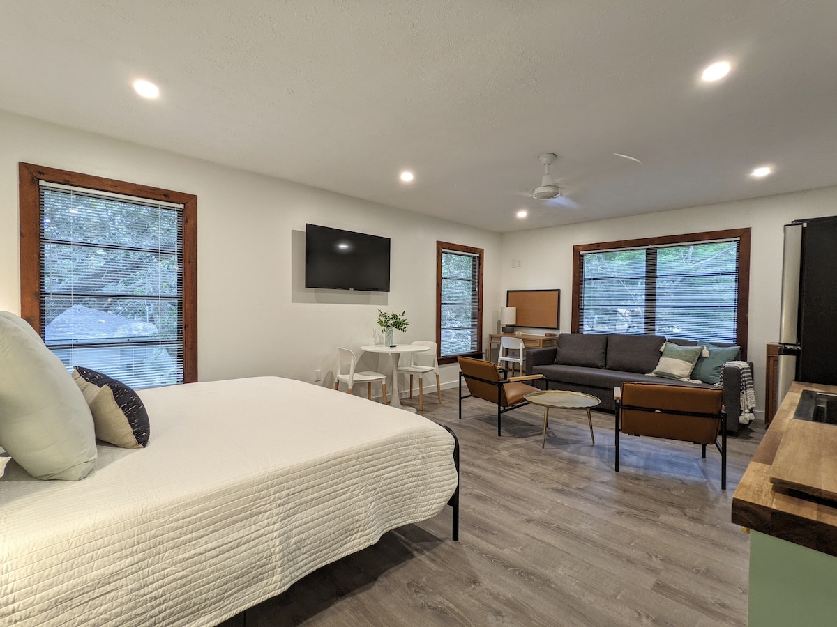 Acest apartament este o gură de aer curat - îl vei simți atunci când intri și te vei simți imediat calm și în pace. Strălucitor de curat și spațios, cu un pat matrimonial, confortabil, o baie și o chicinetă complete, iar decorul special în stil vechi din Florida îți oferă sentimentul de ospitalitate sudică pe care îl cauți. Situat central față de o mare parte din Sarasota, poți ajunge de aici pe insula Siesta Key în mai puțin de 10 minute! Fie că ești aici pentru afaceri sau din plăcere, acest studio drăguț va fi cu siguranță un punct forte.