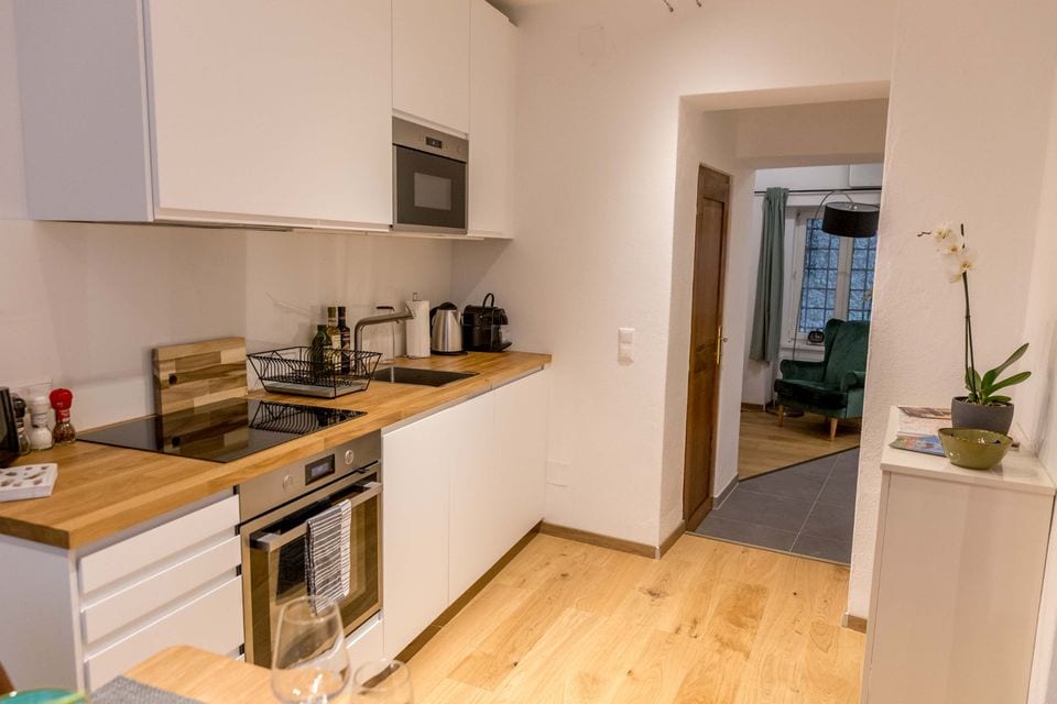 Apartamentul nostru minunat este situat într-una dintre cele mai vechi clădiri din Graz, direct în centrul orașului și convenabil aproape de atracțiile locale. Explorează orașul vechi plin de viață, Schlossberg și Kunsthaus - toate la doar câteva minute distanță. Apartamentul de 45 m2 are un aspect atent proiectat, care cuprinde o zonă de living confortabilă, o bucătărie complet utilată cu mașină de spălat vase și cuptor, un dormitor elegant și baie cu duș și cadă suplimentară. Sunt puse la dispoziție prosoape și lenjerie de pat curată.