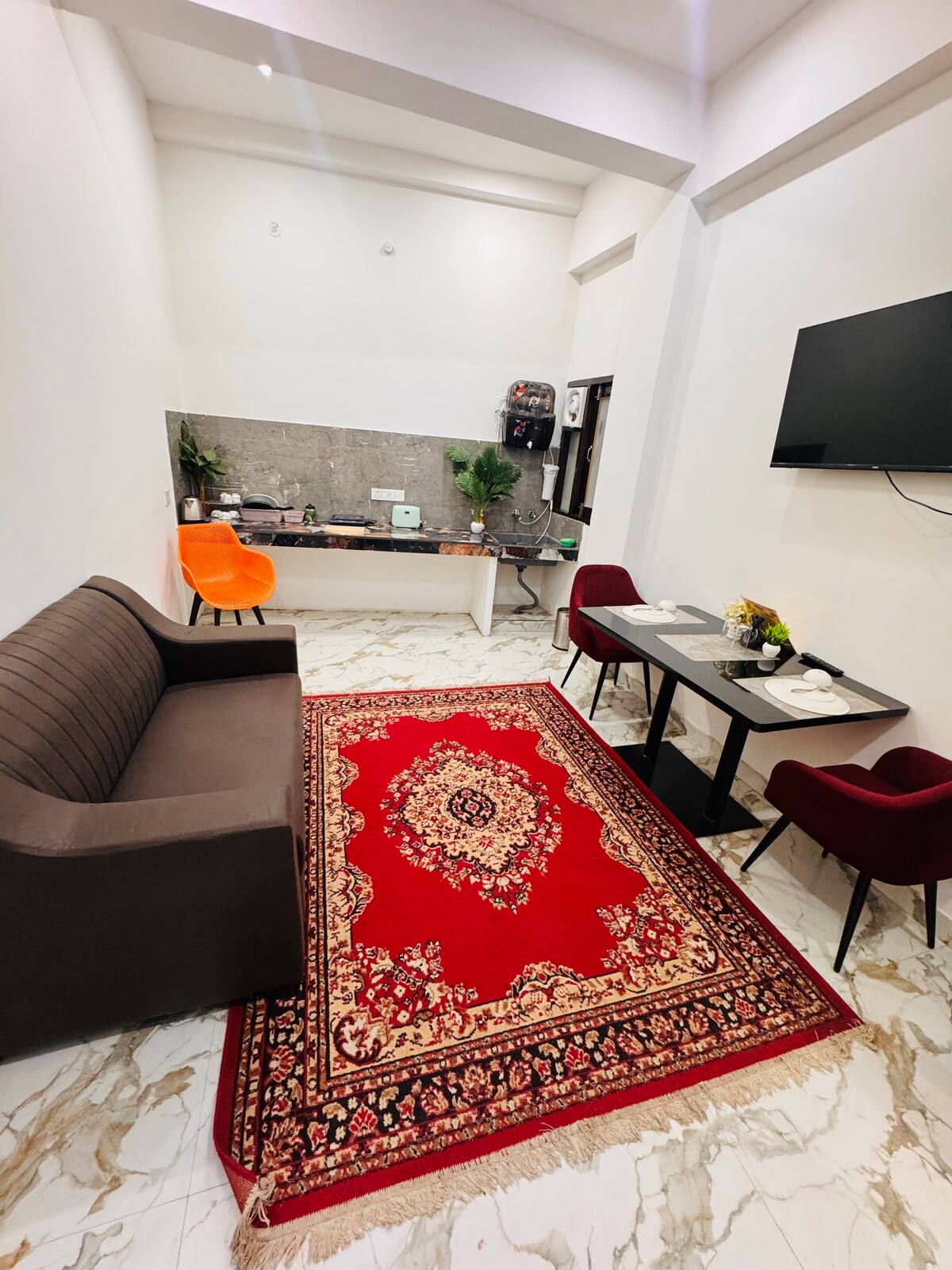 #Premium 2BHK (NUMAI FAMILII) #Sosiți și relaxați-vă cu familia într-un loc absolut henic și securizat #Proprietatea are lift și alimentare de rezervă cu parcare # Templul Kashi Viswanath la doar 2,5 km, Dashashwamedh Ghat - 3 km # Canapea extensibilă convertibilă în living #Masă pentru servit masa #Holul are aer condiționat separat și Smart TV, ambele dormitoare (fereastră AC) # Bucătărie modernă complet utilată pentru gătit (include ceainic electric,inducție, prăjitor de pâine, frigider, coș de fum, filtru de apă #Uscător de păr,fier de călcat, mașină de spălat,Gyser