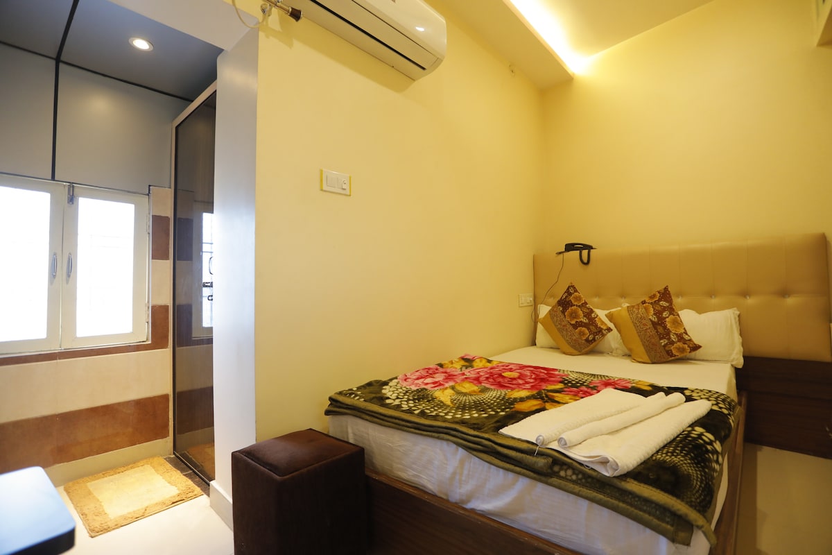 Familia ta va fi aproape de tot atunci când vei sta în această locuință situată central. Hotelul este complet ventilat și poate găzdui între 9 și 10 persoane.Patul matrimonial poate găzdui confortabil până la 3 persoane. Totuși, dacă aveți nevoie de saltele suplimentare, acestea sunt disponibile la un preț nominal de 500 Rs/zi pentru al treilea oaspete și oaspeții suplimentari.Acest preț nominal asigură un raport calitate/preț excelent pentru dotările oferite.
