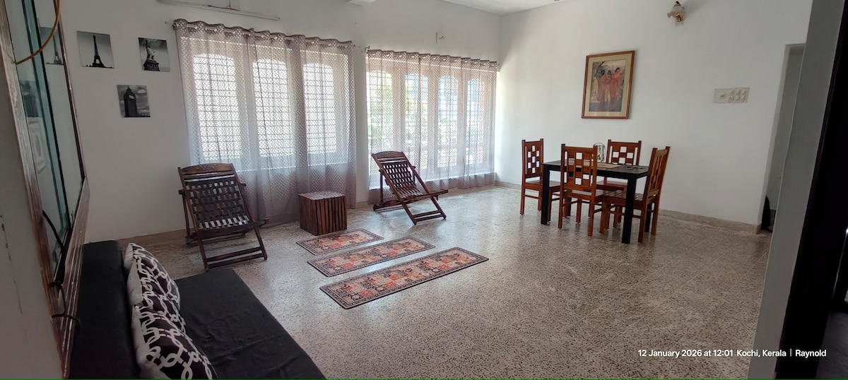 Descoperă-ți casa departe de casă în cel mai elegant cartier din Kochi. Apartamentul nostru recent renovat combină farmecul lumii vechi cu confortul modern, făcându-l baza perfectă pentru muncă, petrecere a timpului liber sau șederi lungi. La câțiva pași de cafenele, restaurante rafinate, buticuri, saloane, cumpărături, spitale, la doar câteva momente distanță. Bucură-te de o locuință securizată, cu securitate non-stop, Wi-Fi de mare viteză, alimentare de rezervă și parcare acoperită. Este baza perfectă pentru a te relaxa, a te reîncărca și a te simți ca acasă pe cea mai iubită alee a orașului!