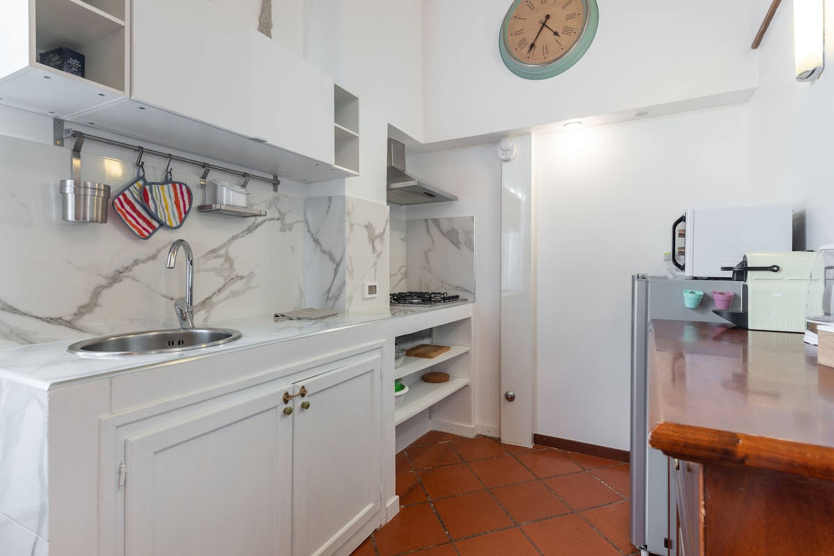 Alcool fin și liniștit situat în zona Prati la 150 de metri de Vatican, la câteva minute de mers pe jos de centrul istoric, conexiuni excelente (metrou la 300 de metri). Tot confortul, lift, wifi rapid, bucatarie italiana, recent renovata, aer conditionat in toata casa, baie noua cu cabina de dus si finisaje in teracota italiana,teracota italiana pe podea si tavan plus un adevarat bucatar italian/proprietar de casa care asteapta sa va intampine.