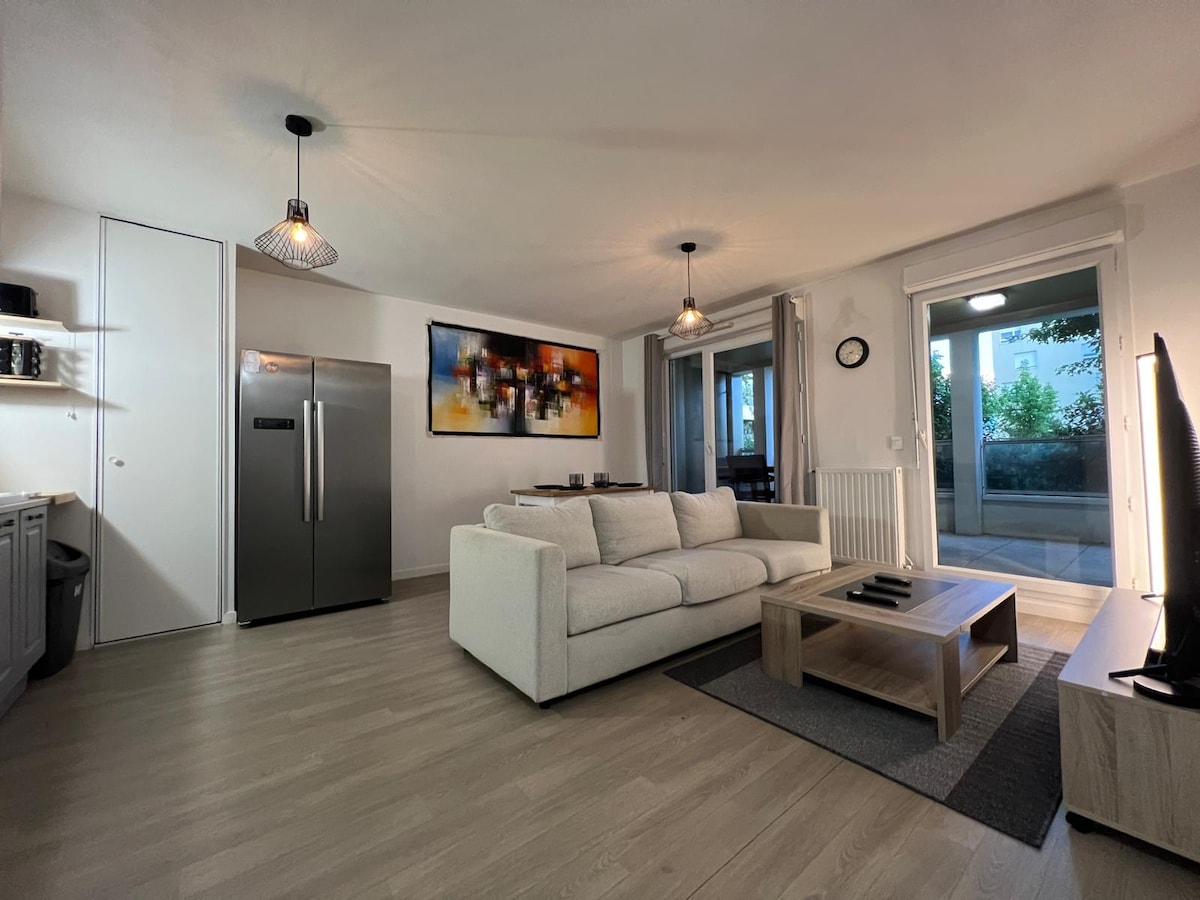 Modern 1BR cu terasă – lângă Lyon