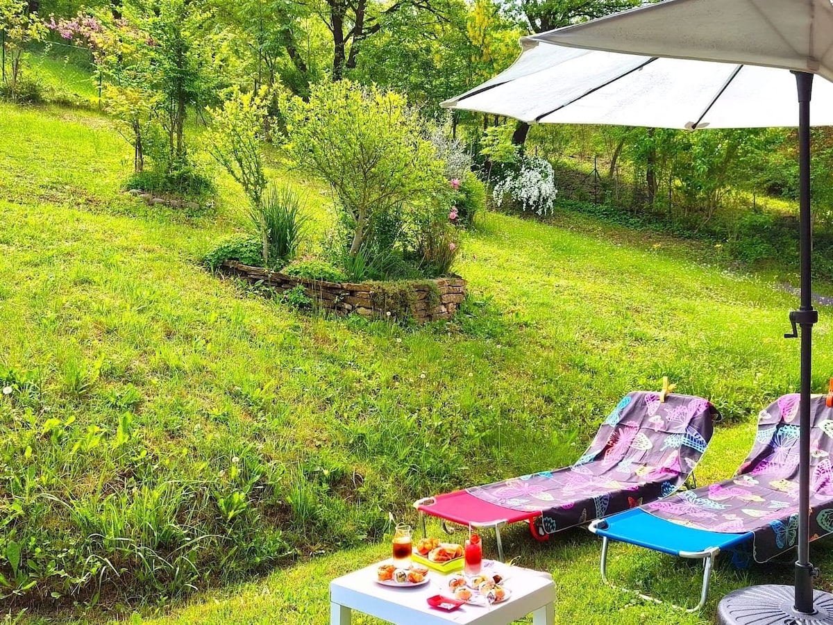 A cozy stone and wood chalet with amazing views of the Apennines, surrounded by nature with a large garden where you can relax and enjoy the spectacular sunsets. We will be happy to host you on the ground floor which is dedicated to the B&B. The warm and welcoming rooms have independent entrances and lead onto the garden. Fantastic location between Bologna and Florence, 10' from the motorway exit and 30' from Bologna airport. Don't miss the sunset, even better with a good glass of wine!