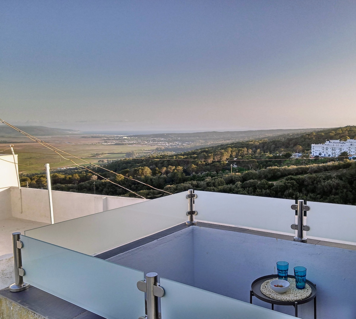 Casă de vis Vejer: centrală, terasă pe acoperiș, vedere la mare