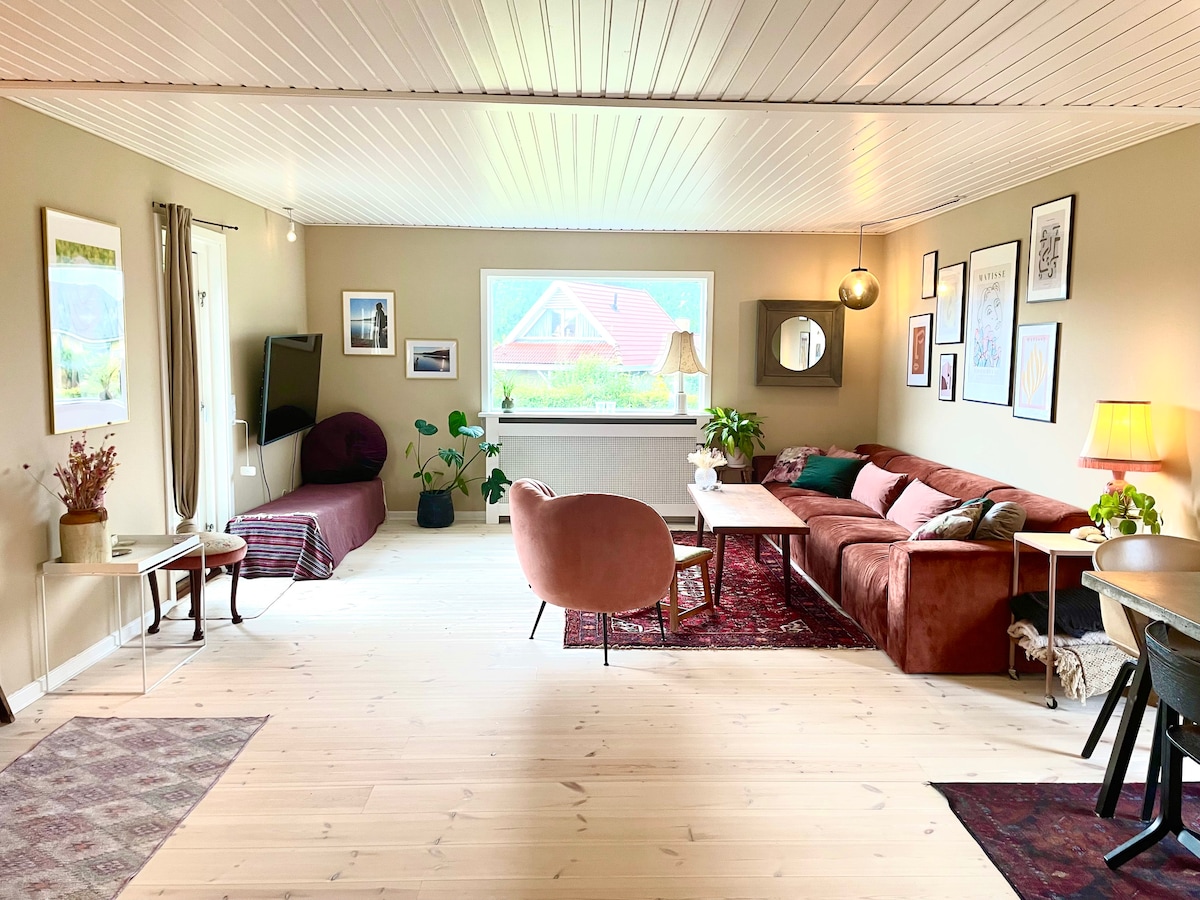 Aici poți sta aproape de tot ce are de oferit Vejle - de la natură frumoasă la un centru frumos al orașului. 5 minute de mers pe jos până la Søndermarksskoven și 7 minute de mers pe jos până la Bryggen. 10 minute de mers pe jos până la gară cu legătură cu autobuzul către, printre altele, Legoland. Intrare privată, o cameră cu pat, zonă de lectură și TV, un dormitor și o bucătărie cu zonă de luat masa. Bucură-te de Vejle și de zona înconjurătoare cu această bijuterie ca bază.