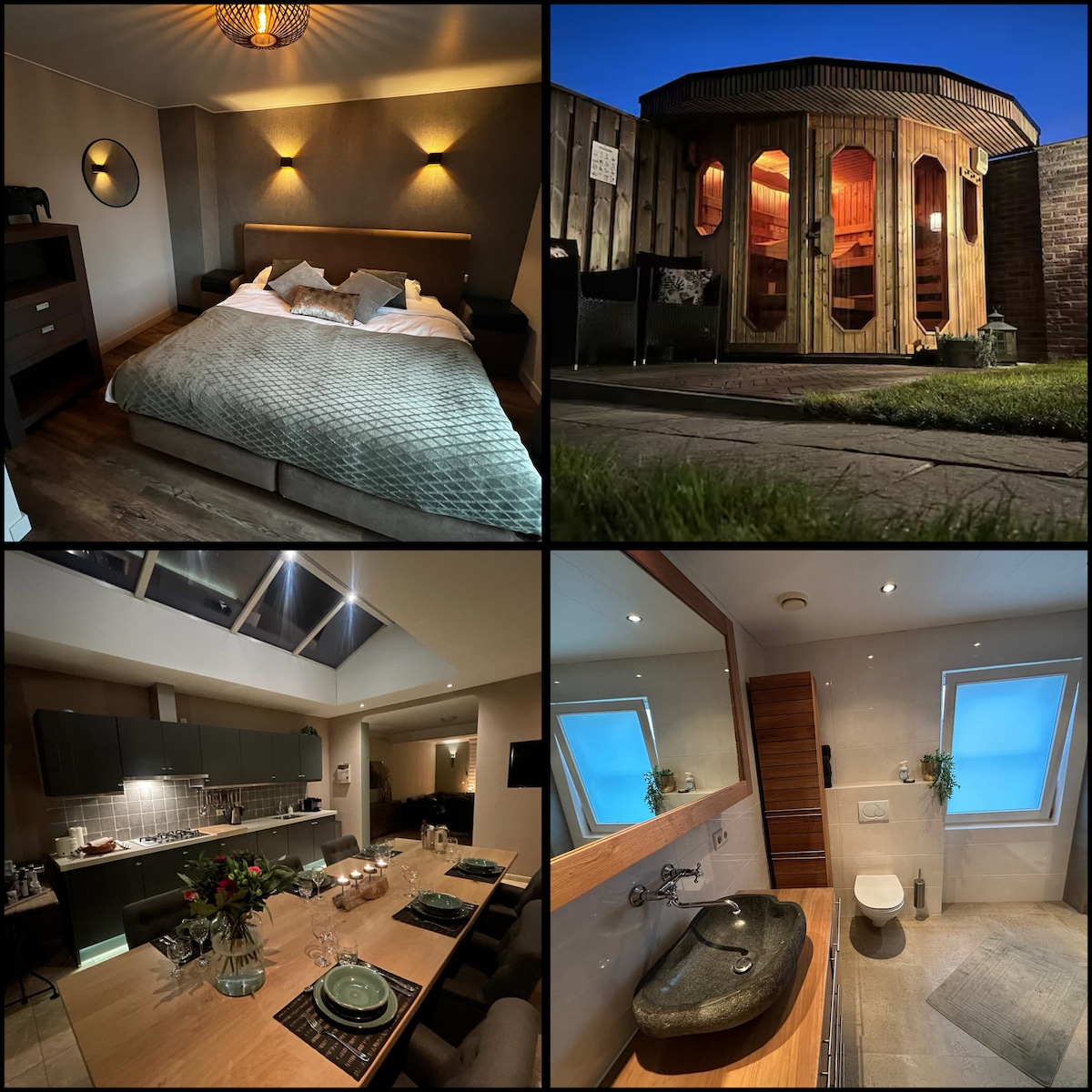 Veți fi întâmpinat de o atmosferă de eleganță și liniște. Întreaga cameră are iluminare ambientală și difuzoare de înaltă calitate. În plus, spațiul are un pat mare confortabil, o cadă cu hidromasaj luxoasă, saună și duș cu efect de ploaie. Casa oferă nu numai confort, ci și facilități practice, cum ar fi WiFi gratuit și parcare privată.