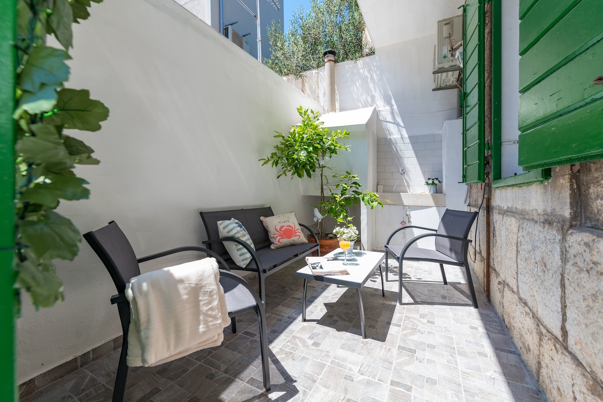 Apartament confortabil într-o locație excelentă, cu o curte pavată cu vedere la centrul vechi; aer condiționat și WiFi! Acesta este situat în partea veche a orașului Split, numit Veli Varoš, un cartier liniștit cu case tradiționale din piatră, aproape de toate obiectivele turistice, dar departe de centrul zgomotos.