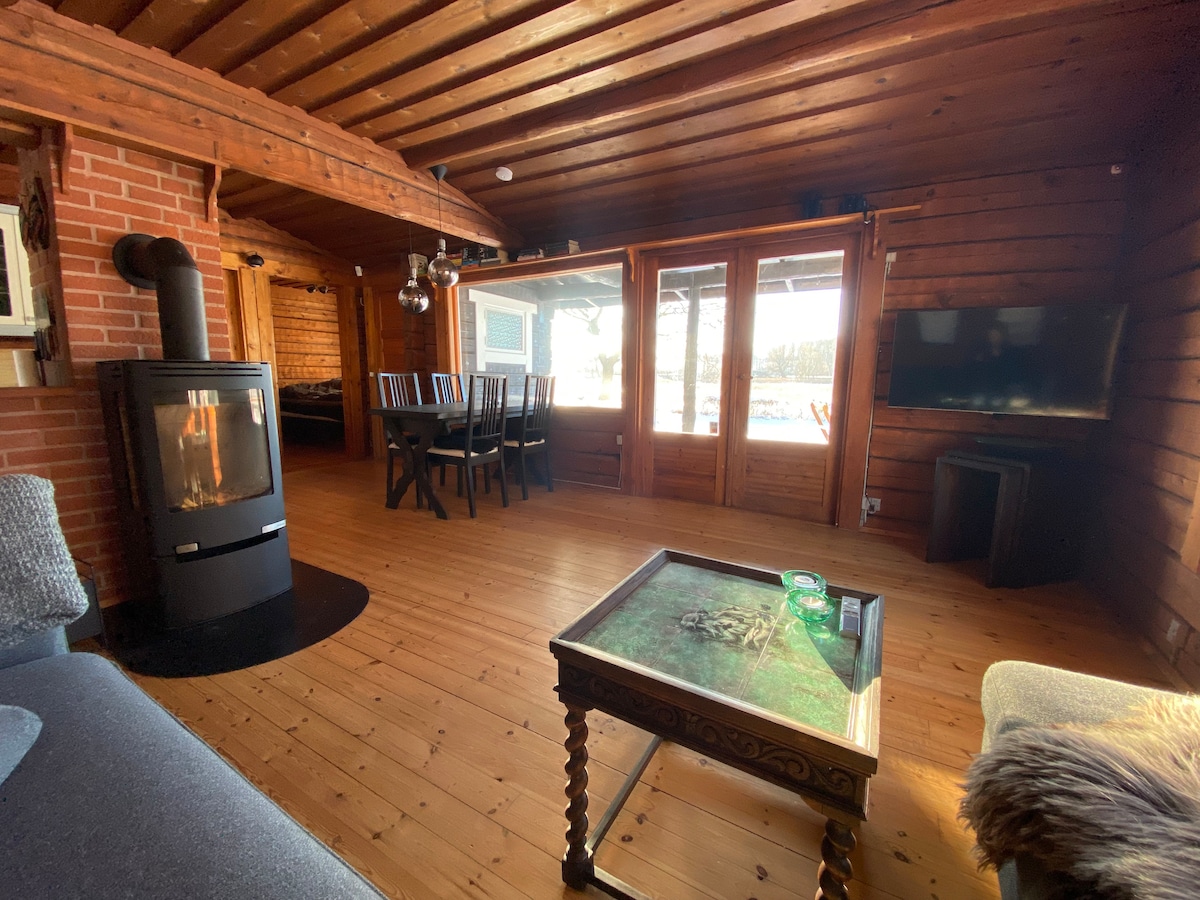 Cabana de bușteni cu vedere la pajiște (45 de minute până la COPENHAGA)