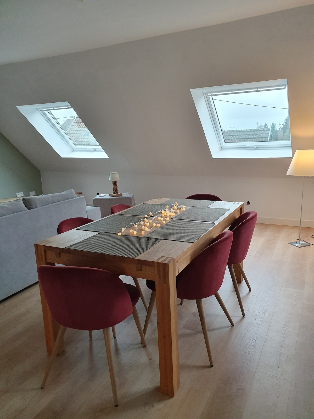Duplex de aproximativ 60m2 clasificat 3* ** foarte luminos, complet echipat în BRUMATH 📍Poziție excelentă: - CU MAȘINA: 3 minute de autostradă / 15 minute de STRASBOURG / 10 minute de HAGUENAU - CU TRENUL: la 10 minute de STRASBOURG - CU AUTOBUZUL: la 20 minute de HAGUENAU - MERS PE JOS: 15 minute de la gara BRUMATH/2 minute de centrul orașului BRUMATH și de toate magazinele (supermarketuri, brutării, farmacii...) 🅿️Loc de parcare gratuit și privat în curtea interioară și adăpost pentru biciclete