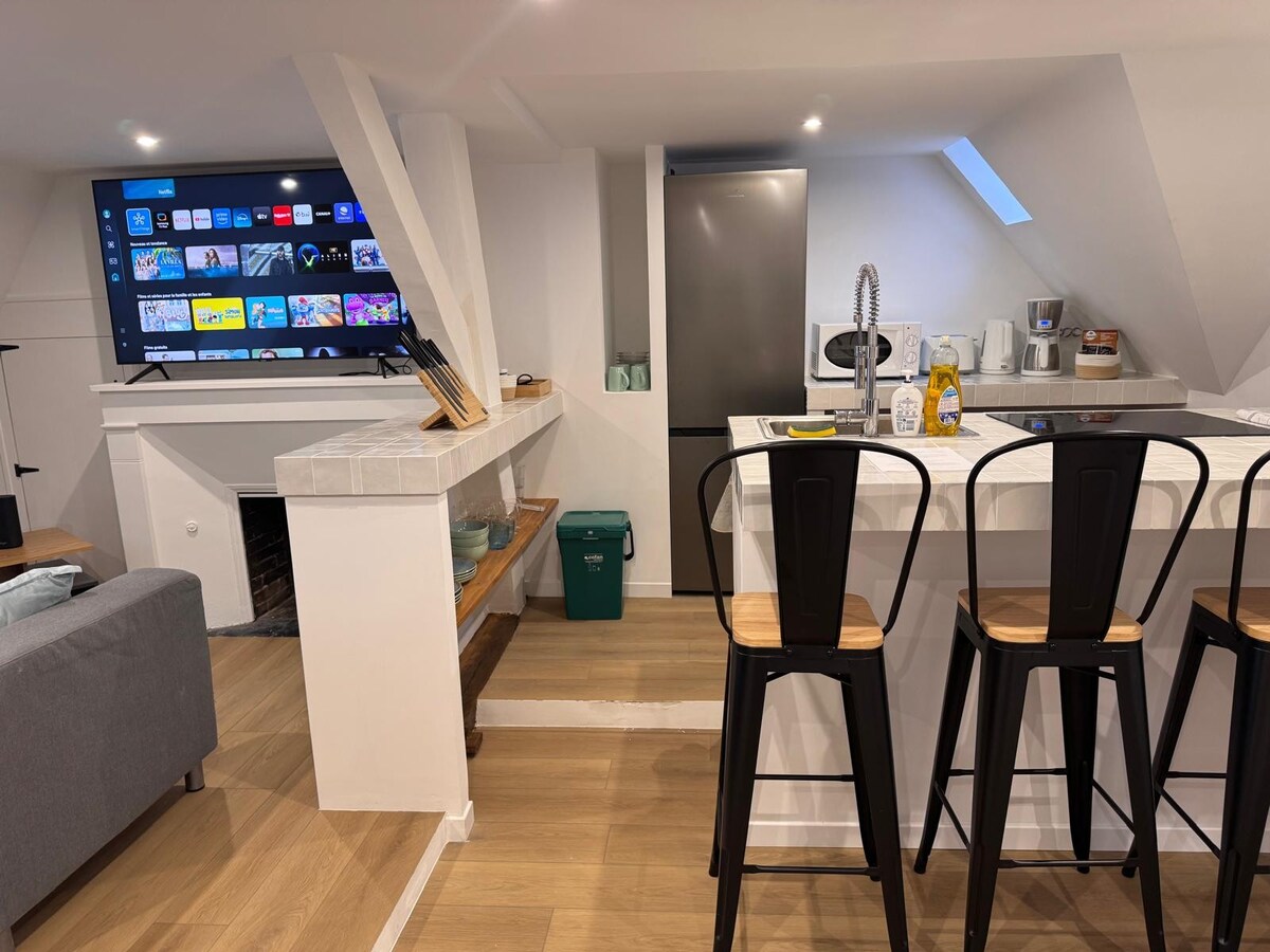 Bine ai venit în apartamentul nostru L'Abbatiale, un spațiu spațios de 86 m² care combină farmecul și convivialitatea, situat ideal vizavi de maiestuoasa mănăstire La Trinité. Avantajele șederii tale: Living mare și sufragerie luminoasă, cu foosball și terasă interioară pentru momente de relaxare Bucătărie echipată pentru a găti acasă Terasă de 17 m² cu vedere la mănăstire, perfectă pentru luat masa în aer liber 3 dormitoare cu paturi duble Canapea extensibilă cu 2 paturi suplimentare