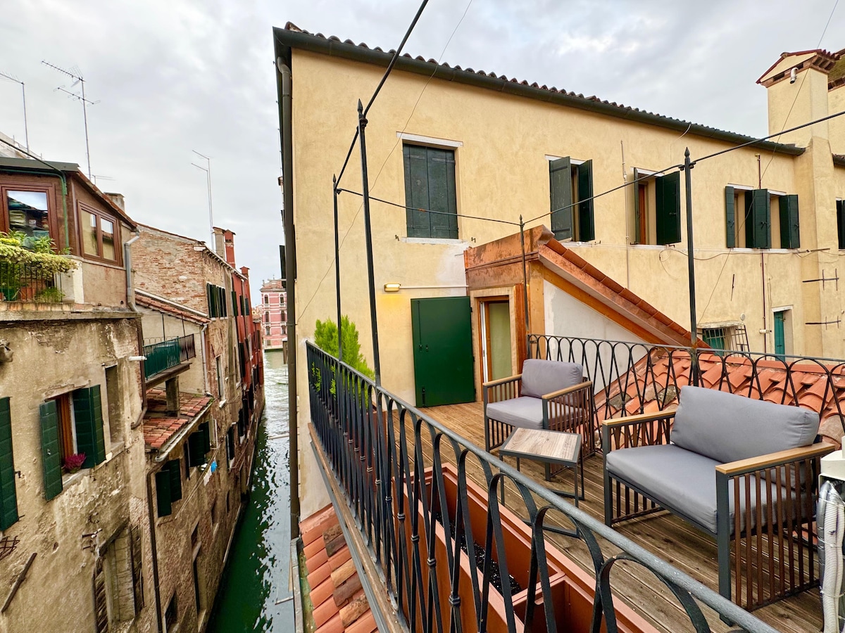Acest apartament de lux pe două niveluri (50 mp) tocmai a fost restaurat elegant, luminos, confortabil. Se caracterizează prin două balcoane care îl fac foarte luminos. Perfect pentru un cuplu, apartamentul este complet echipat cu tot confortul. Apartamentul este liniștit și într-o locație liniștită, chiar în afara fluxului turistic, deși este situat într-una dintre cele mai fascinante și pline de viață zone ale Veneției: Cannaregio