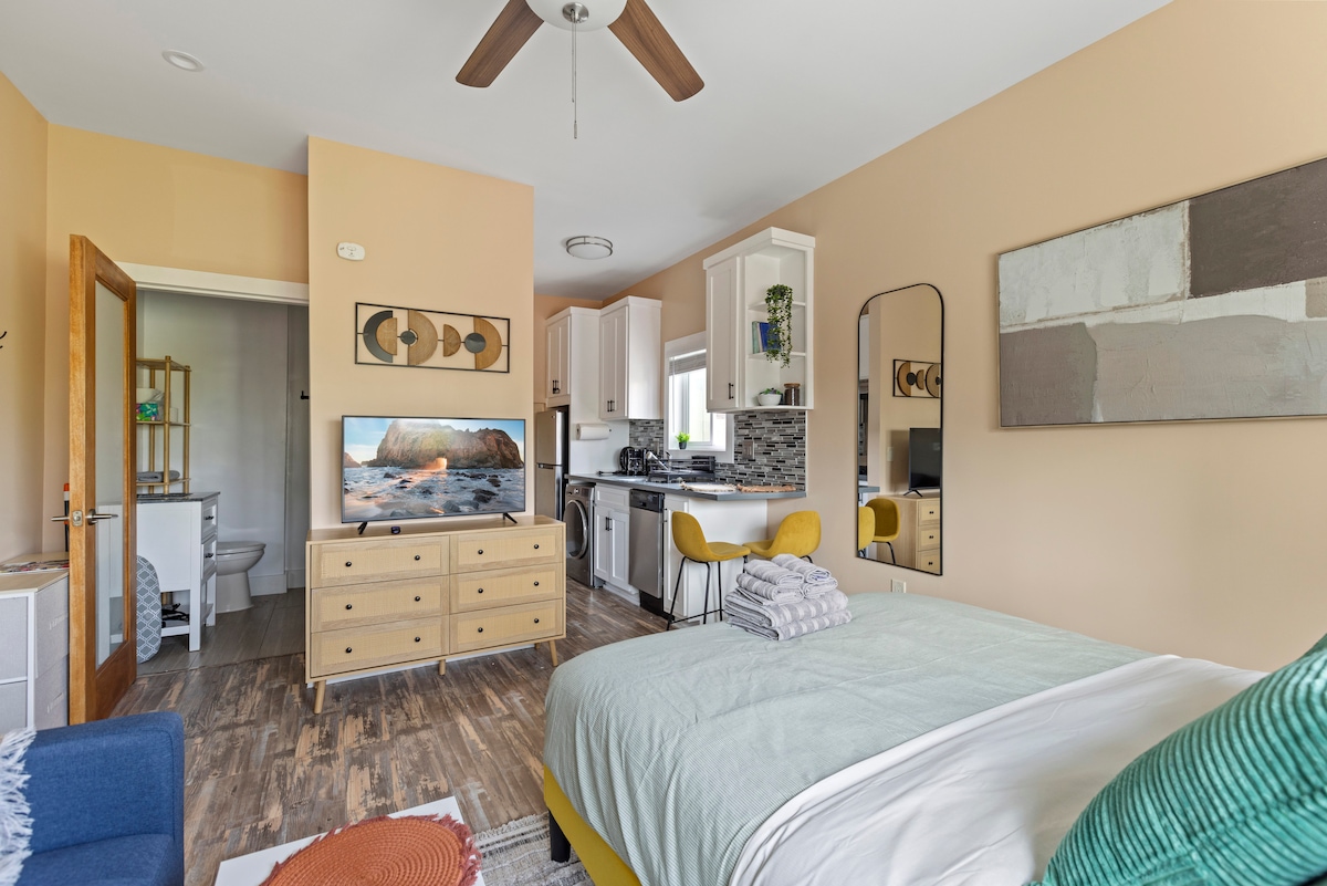 Casă de oaspeți confortabilă de vis, nou-nouță, în inima Veneției, la 5 minute cu mașina de plajă și de faimosul Abbot Kinney blv cu: - Grădină drăguță cu șemineu din lemn - Pat matrimonial confortabil cu cearșafuri de calitate, TV și 2 dulapuri - Duș modern mare cu experiență cu aburi de eucalipt! Ofer un „PACHET ROMANTIC” opțional, care vine cu petale de trandafiri, lumânări și o sticlă de șampanie pentru a-ți SURPRINDE iubitul! 🌹🥂 De asemenea, ofer masaje opționale realizate de un terapeut certificat profesionist