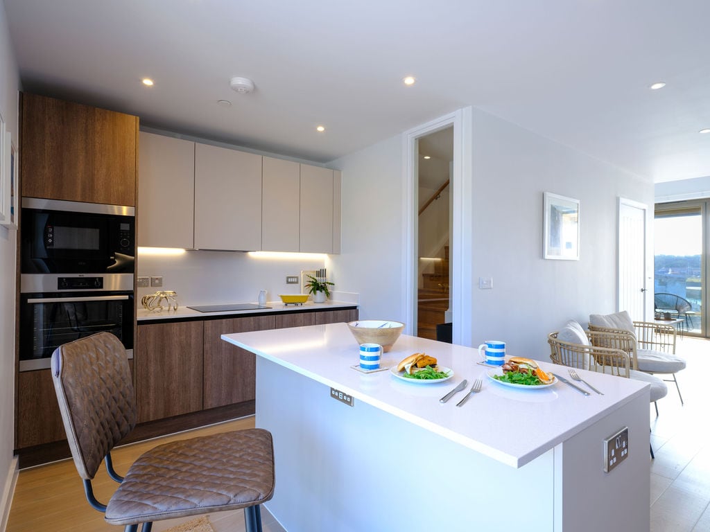 Bucură-te de o experiență elegantă în acest loc situat central. Godrevy este un refugiu de coastă recent renovat, atașat la o casă de familie cu intrare separată, cu parcare privată și sigură pentru chei. Perfect pentru cupluri, lounge-ul/restaurantul spațios are o bucătărie utilată, încălzire centrală, canapea confortabilă cu televizor inteligent de 43 inch și Wi-Fi. Dormitor separat cu baie privată cu pat matrimonial și saltea Emma, baie cu duș și șină încălzită pentru prosoape. Afară se află o terasă privată cu masă și scaune.