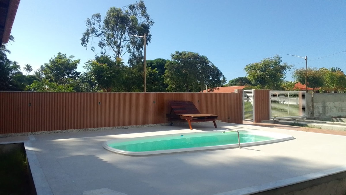 🏖️ DE CE SĂ ALEGI O CASITĂ? Acces DIRECT la plajă – 3 minute de mers pe jos Mediu liniștit, cu o zonă verde mare, pomi fructiferi și grădină • PAZĂ non-stop: comunitate cu acces controlat, zonă împrejmuită • CONFORT: 3 dormitoare cu aer condiționat și saltele bune, kit complet pentru plajă • PRACTICITATE: check-in/check-out independent Wi-Fi + birou la domiciliu (oscilații ocazionale, furnizor local) • TIMP LIBER: jocuri, cărți de colorat, rachete, jucării. Teren de joacă, foișor și promenadă în condominiu. 📍 POZIȚIE: recife Caramuanas de 4 km și 12 km Cacha Pregos