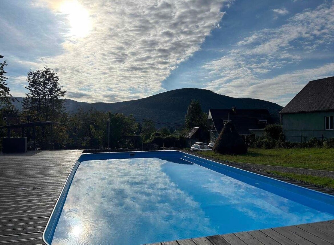 Vă prezentăm o proprietate privată cu saună în centrul Carpaților ucraineni. Situat în orașul Volovets, pe teritoriul moșiei există două foișoare, precum și alte echipamente de grădină. Locația extrem de convenabilă vă permite să vizitați vârfurile montane ale masivului Borzhavsky. De asemenea, este posibil să organizați plimbări cu SUV-uri. Într-o rază de 30 km există multe locuri turistice, inclusiv: cascada Shipit, telescaunele de pe masivul Borzhavsky, precum și buncărul liniei Arpad și multe altele.