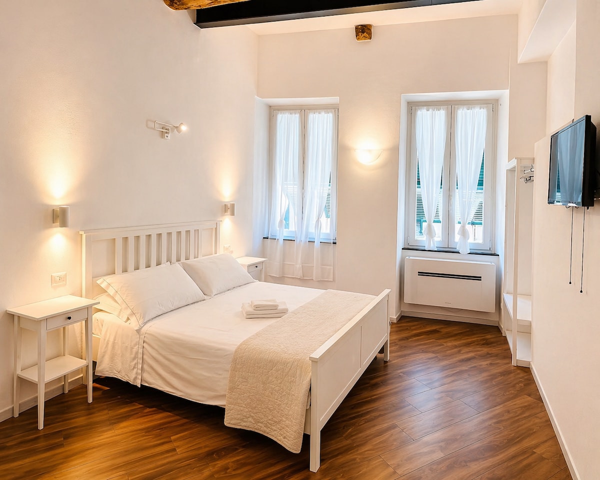 Trezește-te în inima orașului Vernazza, unde luxul întâlnește farmecul Cinque Terre. Un cuib recent renovat care miroase a nou, cu vedere la piață și la marea albastră. La doar 2 minute de tren, descoperă un refugiu complet cu tot confortul: bucătărie modernă, aer condiționat și puritate Dyson. Ideal pentru 3 adulți și un copil (<12 ani). Lasă-te legănat de ritmul satului și bucură-te de o experiență de neuitat. Cod citra 011030-LT-0247