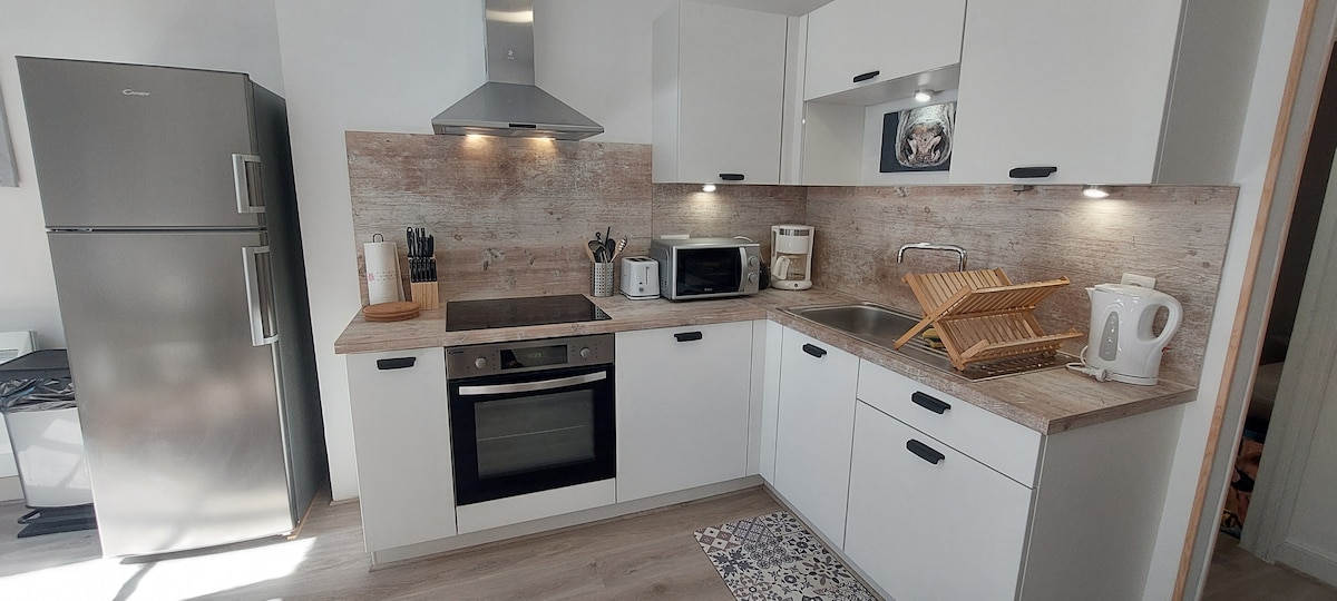 Apartament în inima orașului Allanche. Renovat într-o temă locală. Acest apartament confortabil cu 2 dormitoare (cu lenjerie de pat) îți va permite să vezi direct de la ferestre trecătoarea festivalului Estive în fața ochilor tăi. Casa noastră este una dintre ultimele care și-a păstrat porumbelul. Traseele de mers pe jos și parcurile regionale vă vor oferi mai multe descoperiri și activități. Micul nostru cuib, cuibărit în inima orașului Cantal, este locul perfect pentru relaxare.