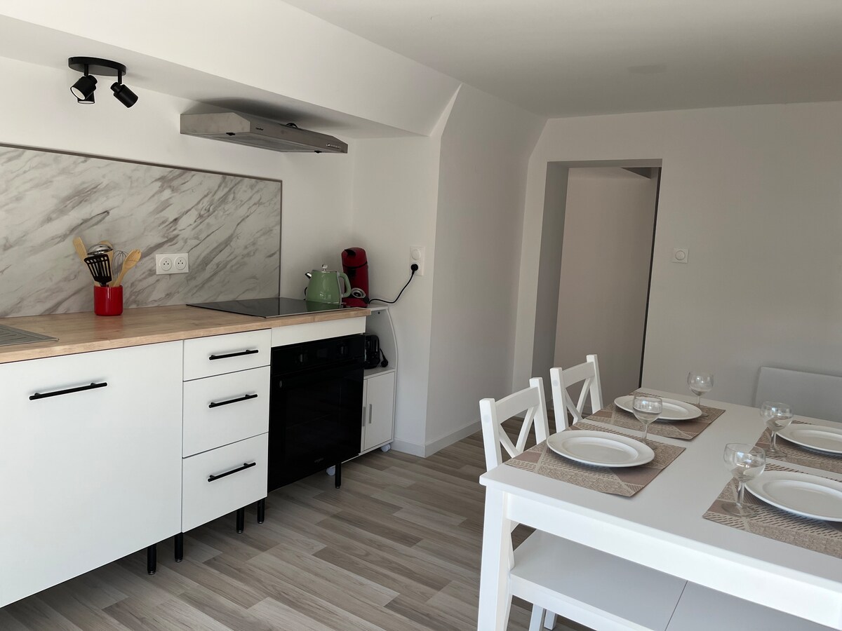 Cazare mare, inclusiv un singur spațiu de 45 de metri pătrați cu bucătărie utilată ( cuptor, cuptor cu microunde, plită, frigider) . O zonă de living cu un pat clic-clac, un pat (lenjerie de pat nouă 160/200) , o zonă de luat masa cu 4 scaune, un vestiar... O cameră mare de duș, uscător de prosoape... Este pentru până la 4 persoane (inclusiv copii) și un bebeluș. O terasă mare cu masă și scaune cu vedere la o grădină care nu este trecută cu vederea. (Cu excepția proprietarului). Ne pare rău, dar nu acceptăm animalele de companie