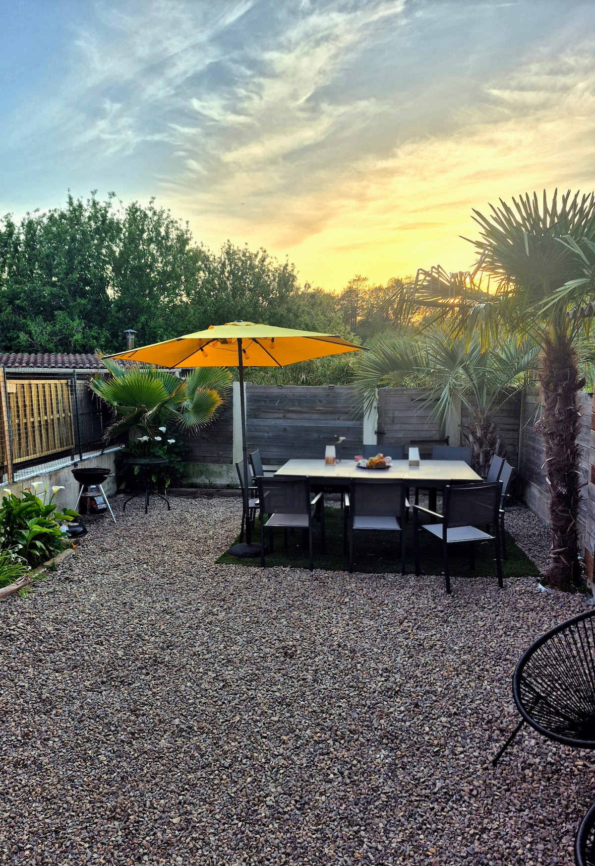 Apartament liniștit și complet privatizat, ideal pentru un cuplu cu copii. Cazare strălucitor de curată și dezinfectată. Grădină privată mare cu legume de sezon și curte securizată pentru copii. Bucătărie utilată, living cu canapea extensibilă, dormitor cu pat dublu, baie cu cadă și mașină de spălat rufe. Terasă cu grătar și parcare privată. Plaja la 15 minute, magazinele la 10 minute, gara la 1 km, aeroportul la 10 minute. Primire călduroasă și sfaturi personalizate.