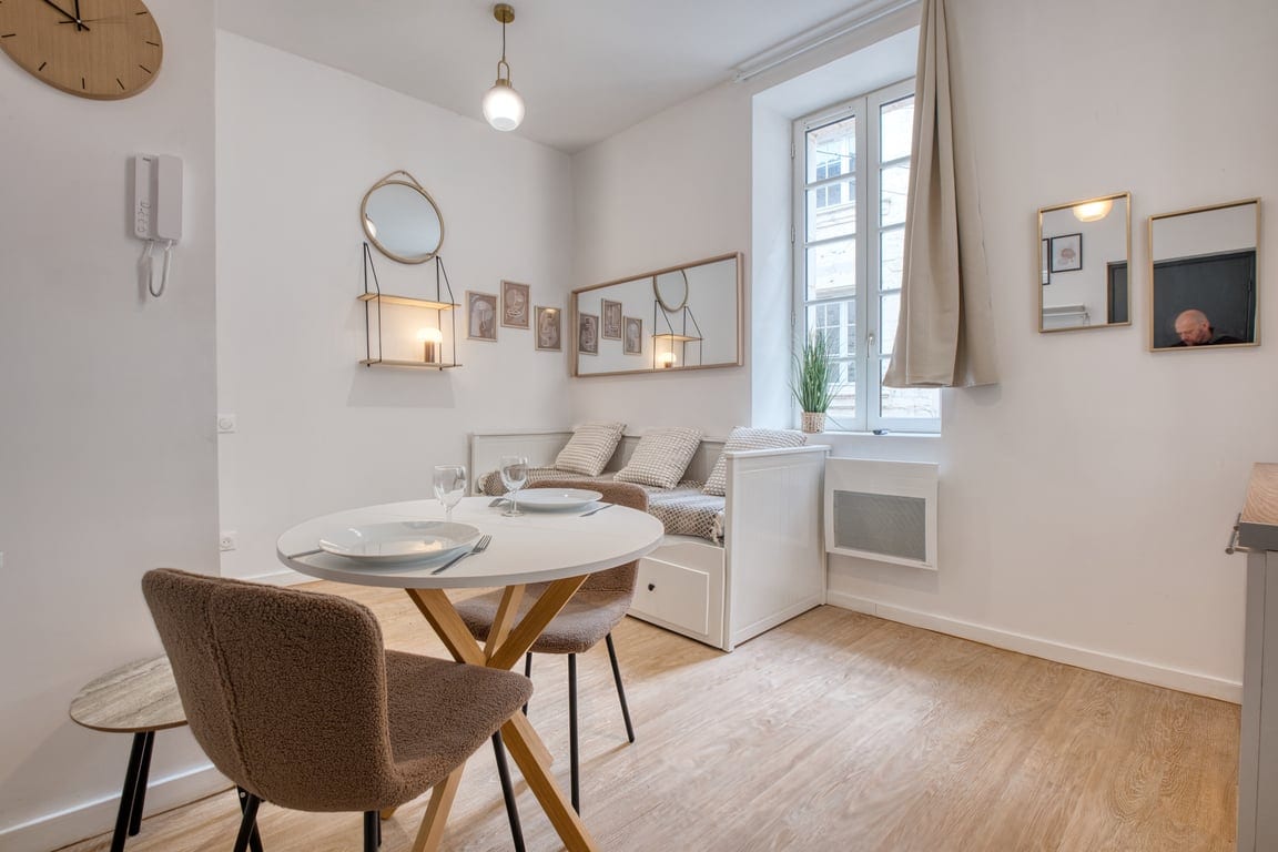 Situat în inima centrului istoric al orașului Sarlat, pe faimoasa Rue Montaigne, într-o casă medievală renovată în 2020, profitând la maximum de patrimoniul său (piatră, parchet), apartamentul de 64 m2 oferă o terasă și vederi excepționale la Catedrala Sf. Sacerdos și la Grădinile Focului. Te rugăm să reții: pentru grupuri sau familii mari, este, de asemenea, posibil să închiriezi întreaga casă, până la 14 persoane („La Demeure de Bacchus”, anunțul Airbnb nr. 51800236).