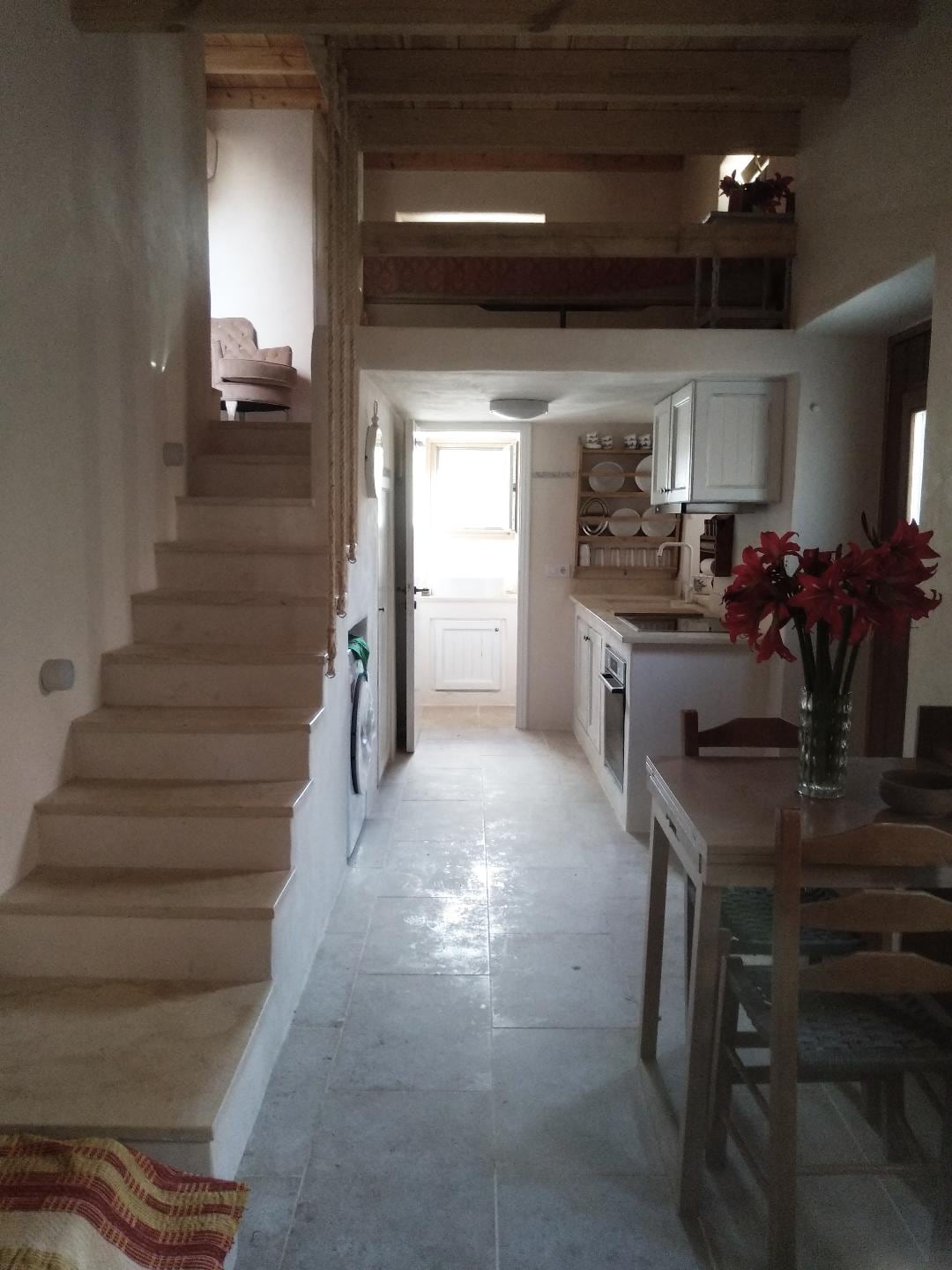 Stone House Retreat este unul dintre acele locuri în care clădirea pare să crească din pământ, mai degrabă decât să stea pe el. Pereții groși păstrează răcoarea dimineții în timpul zilei fierbinți, un pat dublu umple camera principală cu un scop liniștit, iar terasa încadrează o priveliște cu plantații de măslini care se întind până la mare. Chicinetă, aer condiționat, Wi-Fi fiabil, baie curată - toate prezente, dar niciodată intruzive. Pentru cupluri sau persoane care călătoresc singure, care se simt ca acasă într-un loc solid și ușor vechi.