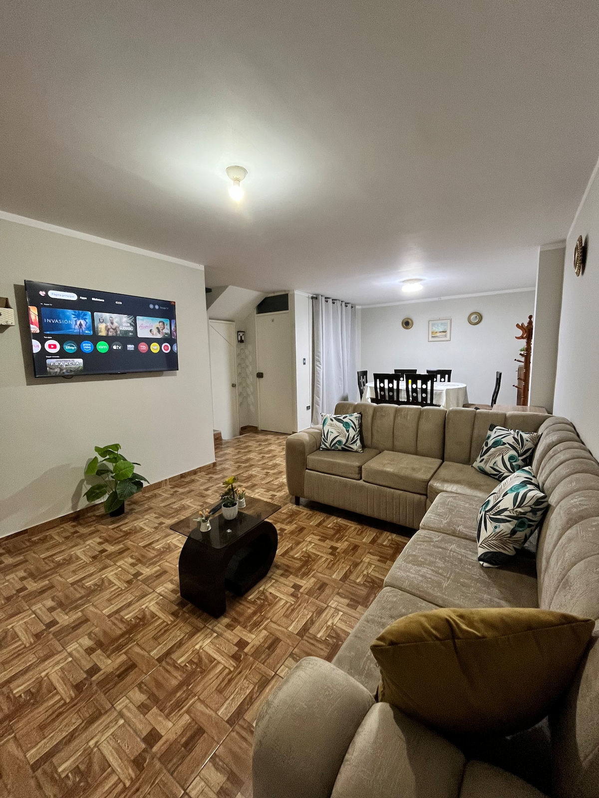 🌿 Bucură-te de o ședere confortabilă și liniștită în această casă modernă dintr-un cartier rezidențial supravegheat 24 de ore din 24. 🚗 Include garaj gratuit, Wi-Fi rapid, bucătărie complet utilată și Smart TV. 📍 Situat la doar 2 străzi de Plaza de Armas de Moche și la 10 minute de Trujillo, ideal pentru turiști, directori sau familii care caută confort și siguranță. 💤 Două dormitoare cu paturi confortabile, 1,5 băi și o cameră confortabilă pentru a te relaxa după explorarea zonei.