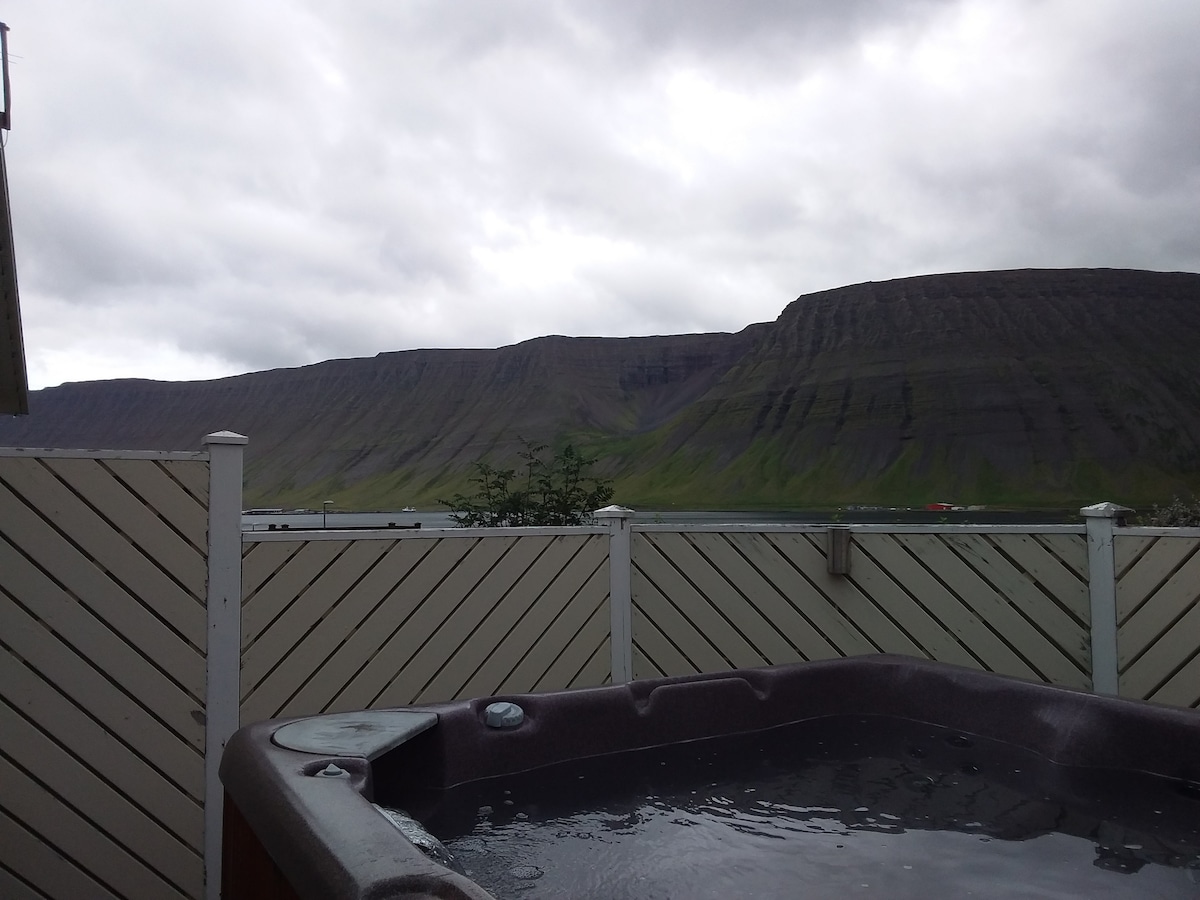 Mountain Song este un refugiu unic pentru cei care caută frumusețe, coastă nesfârșită, odihnă, + singurătate. Priveliștea asupra apei + în josul văii fiordului este epică. Ferma este super caldă + confortabilă, rustică + pitorească, cu cei peste 300 de acri din jur nedezvoltați + afine peste tot. Te afli la 20 de minute de inima orașului Isafjordur (pop 2800) - poarta de acces în fiordurile W. Are cele mai bune restaurante, magazine alimentare, cafenele și activități turistice /de aventură din regiune...